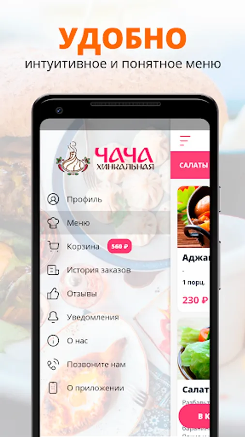 An application for ordering ready-made food from Khinkalnaya "CHACHA".