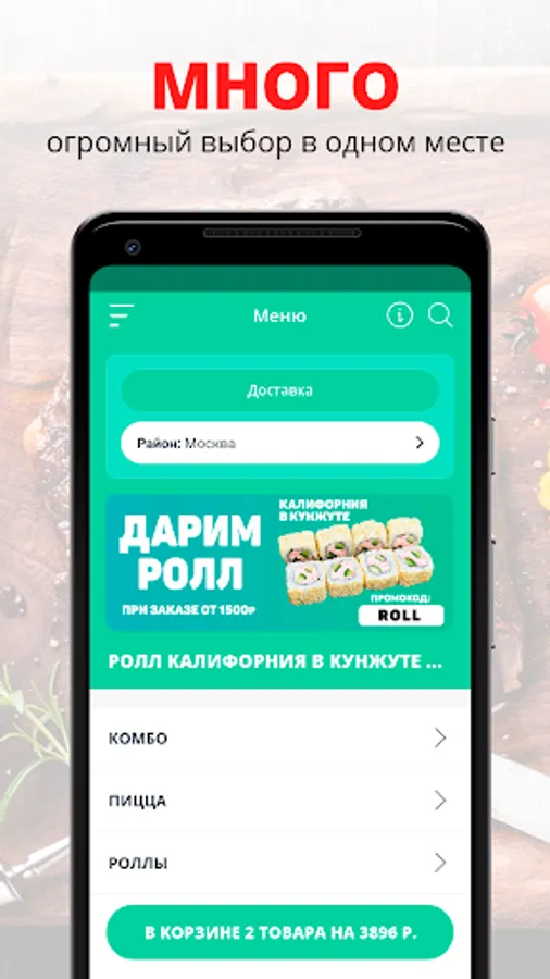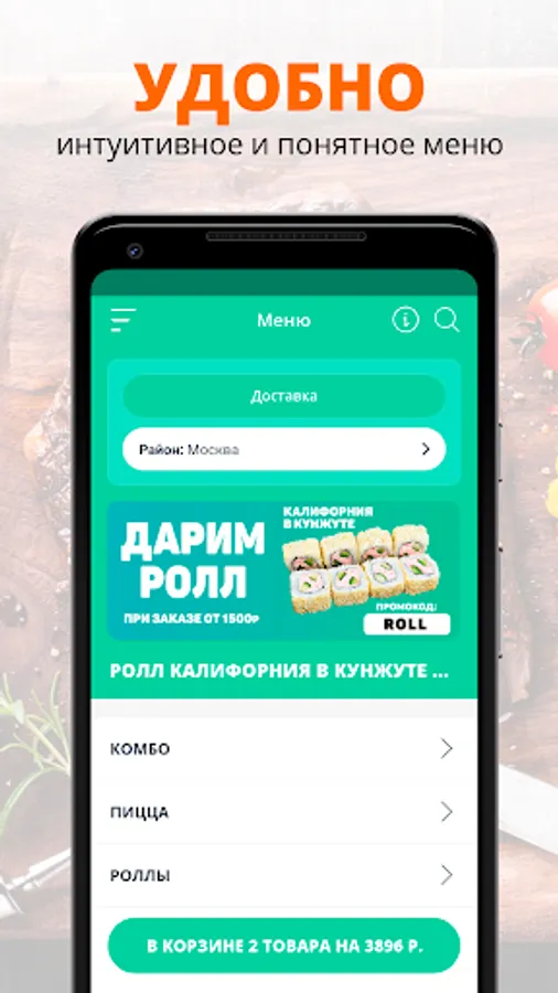 Install the application and order pizza, sushi, wok in 2 clicks.