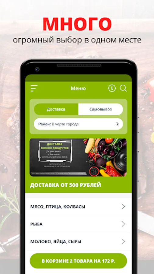 Tasty shop is a small store with very fresh products. We deliver products in Nizhny Novgorod and Kstovo. Fresh fruits and vegetables from the market, fish, meat, minced meat. Order high quality goods at regular prices and we will deliver them to you on the same day! Delivery and assembly is free.