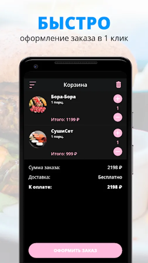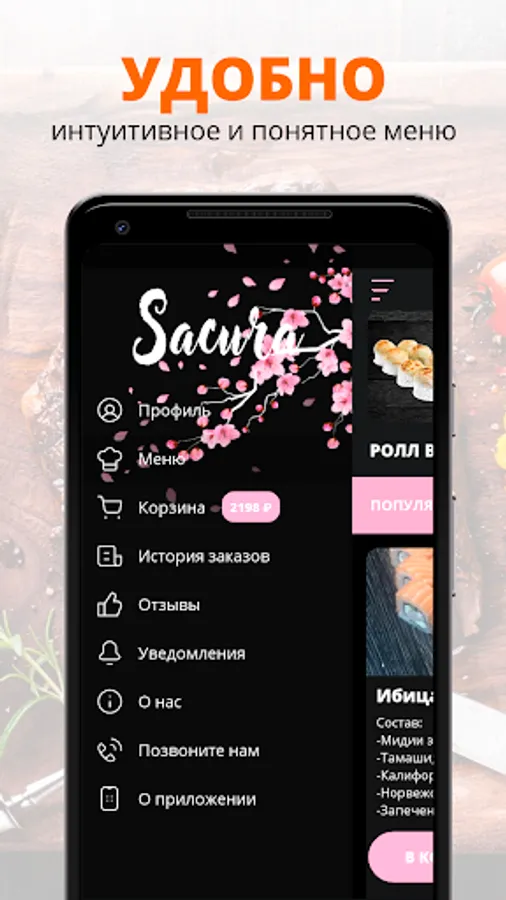 The Sacura app is a convenient way to order food to your home or office! We prepare our dishes from high-quality fresh ingredients and deliver food in Novomoskovsk quickly and carefully.