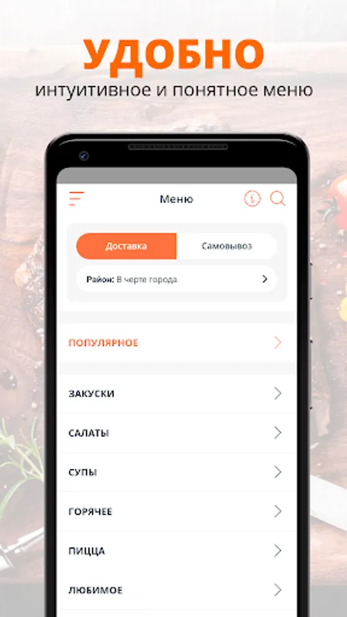 selection of the city and delivery zone,