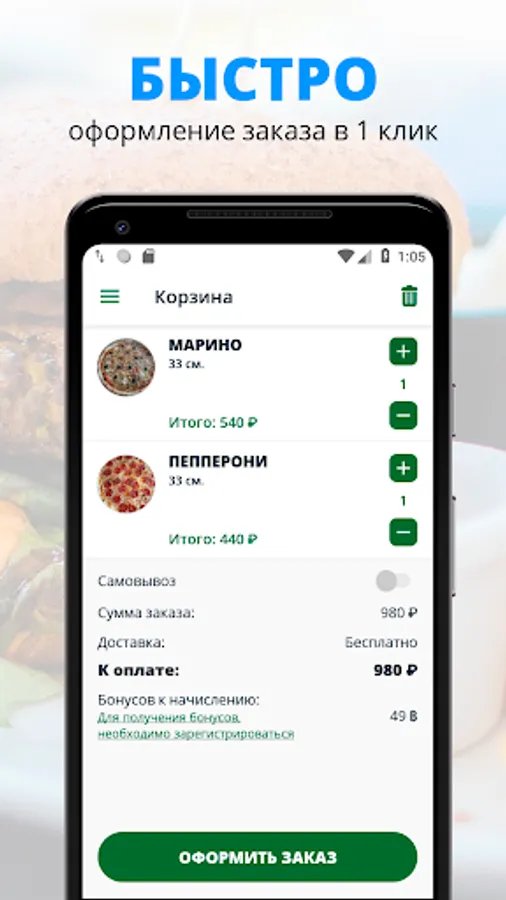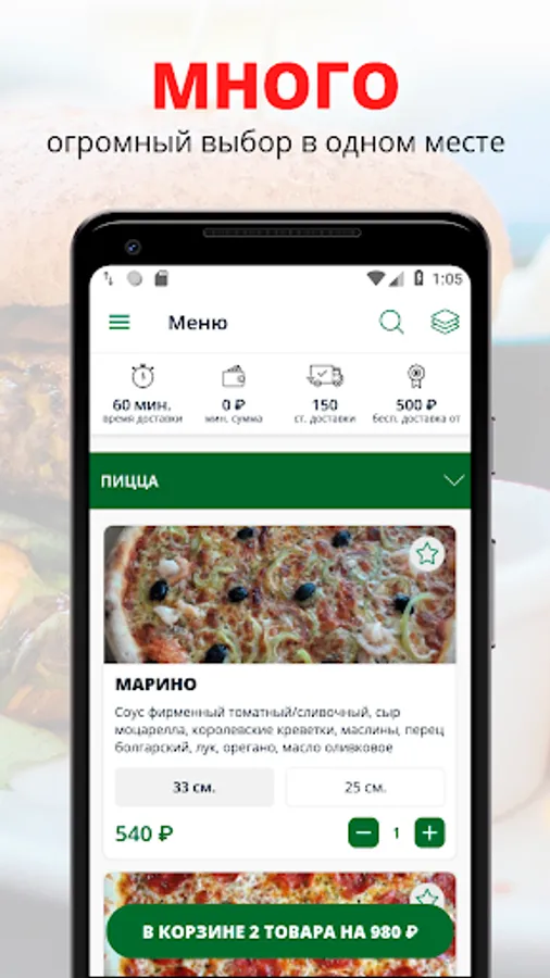 We cook pizza like in Italy, in a wood-burning oven, on a hearth at a temperature of 450 degrees. We use quality products, special flour, olive oil and REAL mozzarella. We observe all the canons of a perfectly correct pizza.