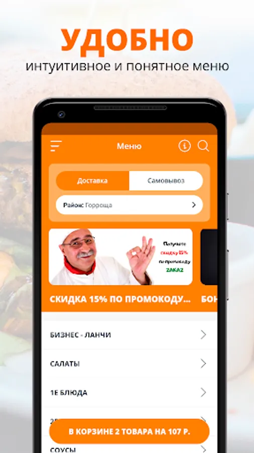 Lunch cafe Khlebosolye delivers homemade food and business lunches.