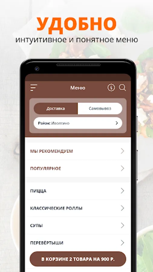 Use a convenient application for ordering food "Sugiru". There are always fresh and mouth-watering rolls, sushi, pizza and other food on our menu, which is now so easy to order with delivery to your home or office!