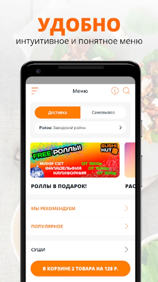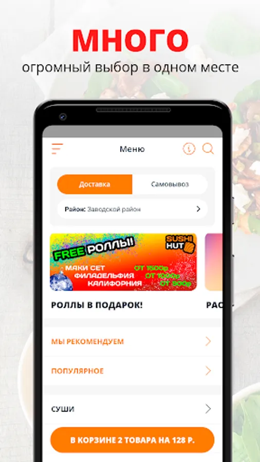 Sushi Hut - fast sushi delivery in Saratov. We always have the freshest products, the fastest delivery and the most honest prices (all containers and sticks are free).