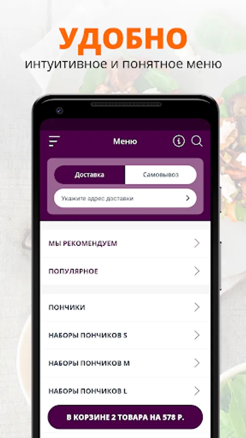 Download our application and place an order for donut delivery in St. Petersburg in just a few clicks!