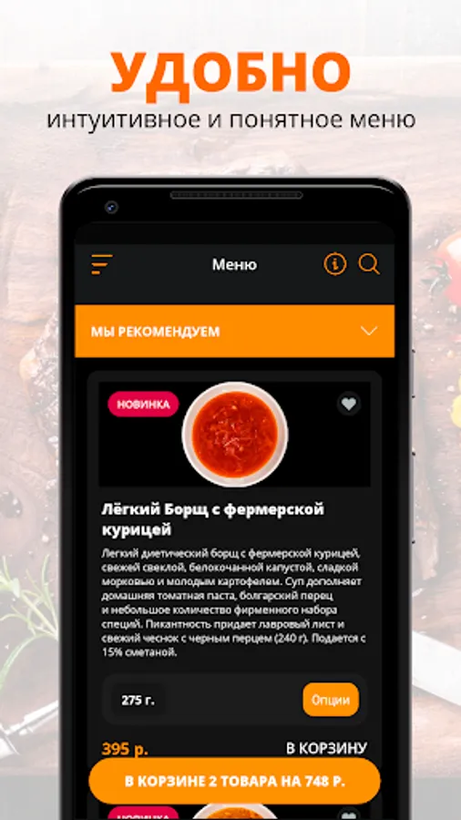 The PeliBox app is a convenient way to order food to your home or office! We prepare our dishes from high-quality fresh ingredients and deliver food in St. Petersburg quickly and carefully.