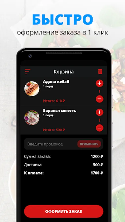 Order your favorite dishes from us and you will be satisfied with the quality of our service. We employ experienced chefs, and couriers will delight you with courtesy and fast delivery.