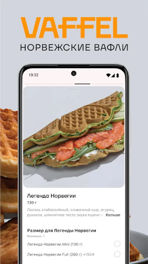 The Vaffel app is a convenient way to order food to your home or office! We prepare our meals with quality fresh ingredients and deliver food quickly and gently.