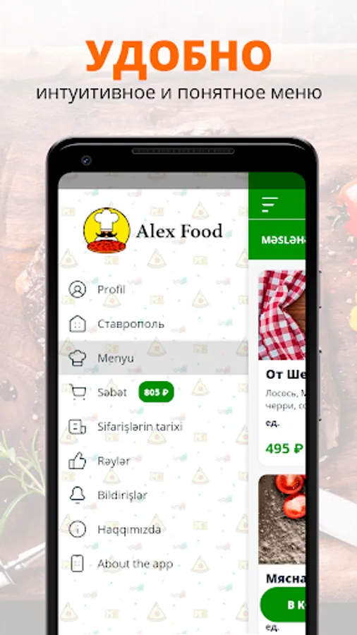 AlexFood is always tasty and fast delivery of pizza and rolls in Stavropol. Now you can order food in our application in just a couple of clicks!