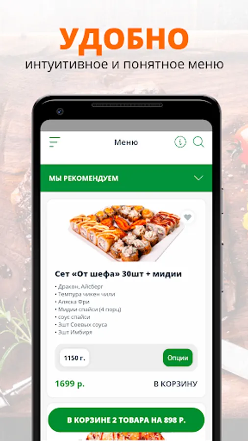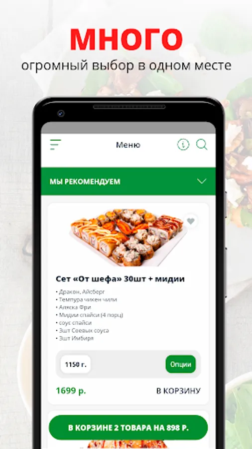 Thanks to the Mint Food mobile application, you can easily and quickly arrange delivery of fresh pizza or pies, juicy burgers or sandwiches, delicious rolls or salads, as well as hot snacks.