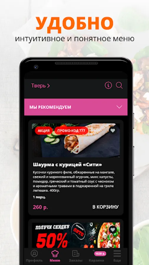 The CITY delivery app is a convenient way to order food to your home or office! We deliver food in Tver quickly and carefully!