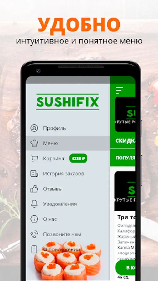 The SUSHIFIX app is a convenient way to order food at home or in the office! We prepare our meals with quality fresh ingredients and deliver food quickly and gently.