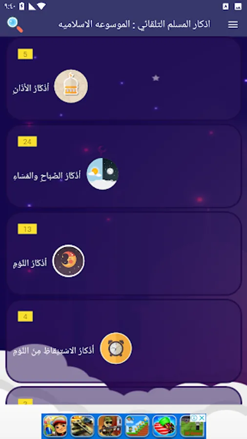 Azkar today, Azkar alerts appear every day with the ability to customize and choose the alarm time from the settings.