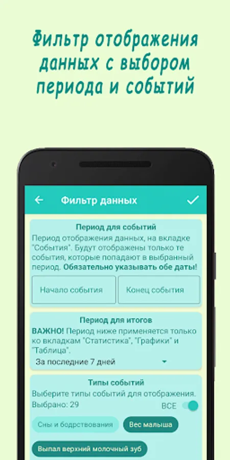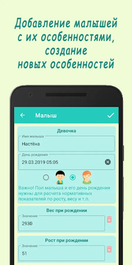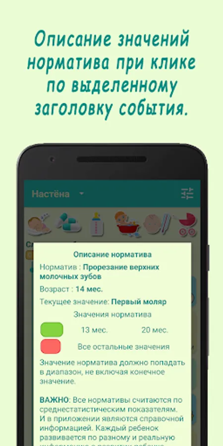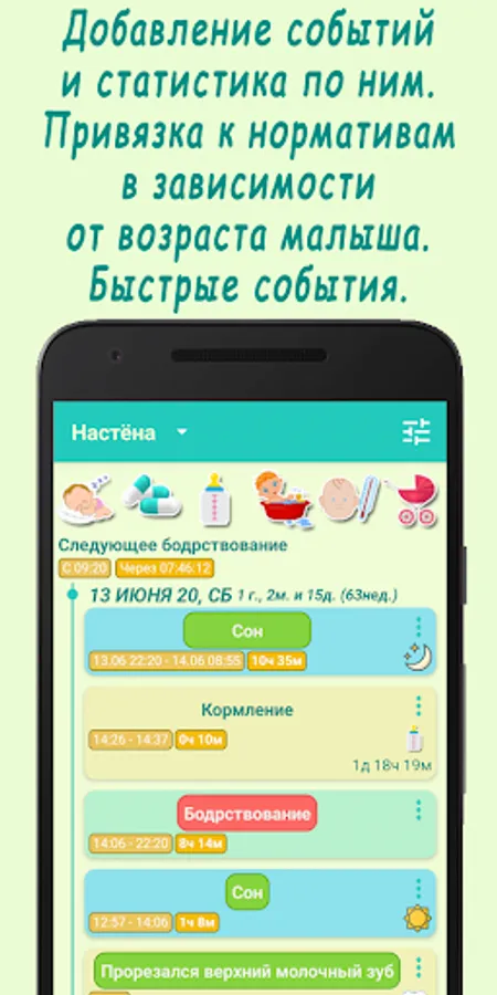 • Add new events: baby bathing; feeding the baby; a walk with a child; first tooth, etc.