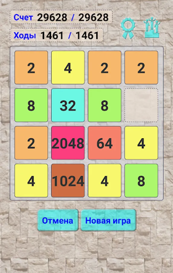 The essence of the game in 2048 is very simple. Moving squares with numbers in any direction and connecting the same, you get a new square with their sum. 2 .. 4 .. 8 .. 1024 .. 2048 .. 8192. And so to achieve a square with the figure in 2048.