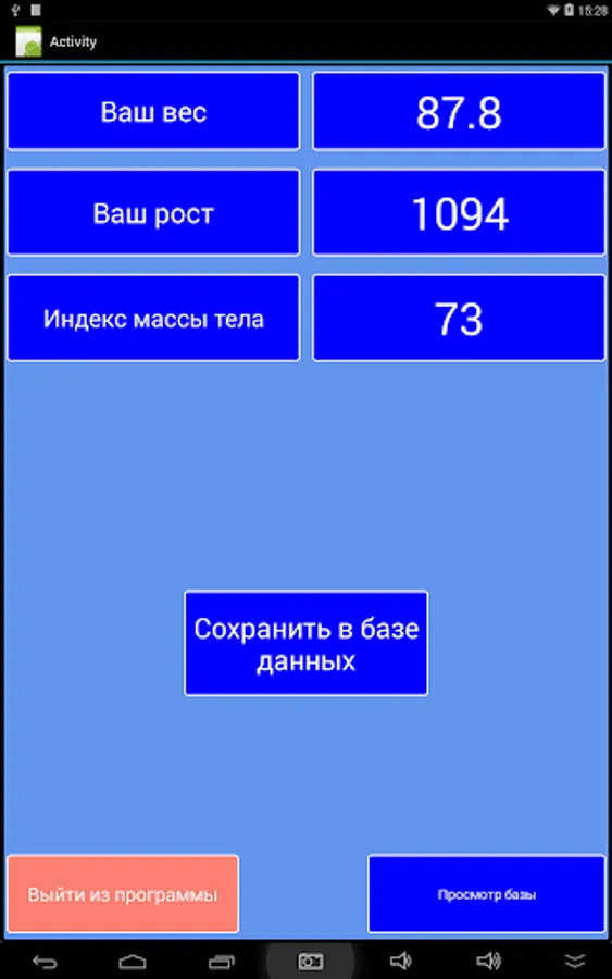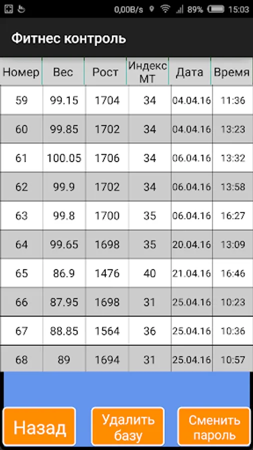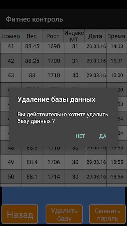 The app is intended for keeping a personal database of weight, height and body mass index. To get the data the application uses the Wi-Fi connection to medical scales MP "HEALTH" 200 HDA (50; P) 310h360 "Y". The database recorded the serial number of measurement, weight, height, body mass index, date and time. The application allows you to create a database to save the measured data, browse the database and delete it. Recommended for application users of fitness centers where you installed MT scales "HEALTH" 200 HDA (50; P) 310h360 "Y".