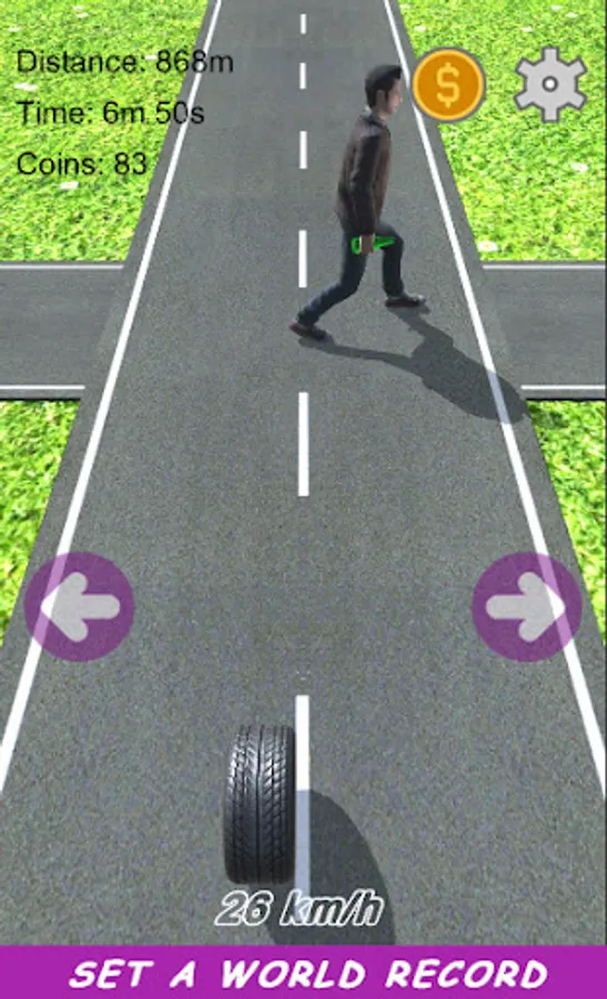 Accelerate the tire to maximum speed in the shortest time, avoiding collisions with obstacles.