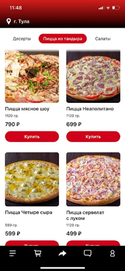 Pizza and khachapuri from a real tandoor, grilled dishes and much more can be ordered for delivery or self-pickup via the Meat Show mobile application