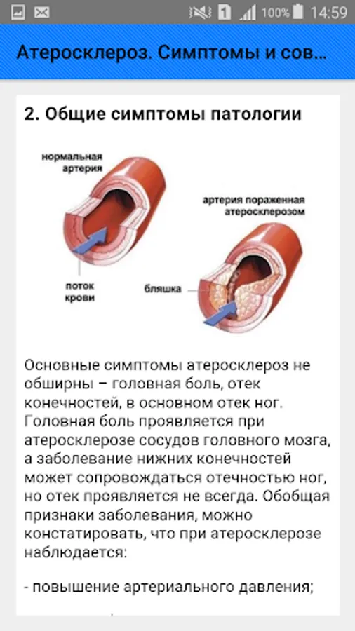Atherosclerosis, the symptoms of which manifest themselves against the background of damage to medium and large arteries due to the accumulation of cholesterol in them (which determines the cause of this disease), becomes a cause of circulatory disorders and a number of serious risks provoked by this violation. Atherosclerosis is a disease that belongs to the category of cardiovascular pathologies and often causes dangerous complications. With age, the disease provokes visible changes in the vessels - they lose elasticity, narrow as a result of plaque deposition. The treatment of atherosclerosis should be started immediately upon detection of symptoms, in order to prevent blockage of arteries, thrombosis and, as a dangerous consequence, death.