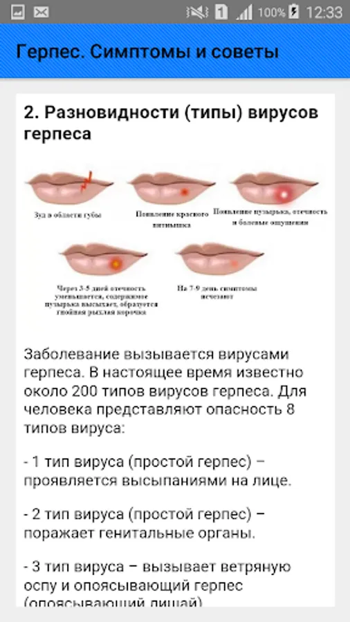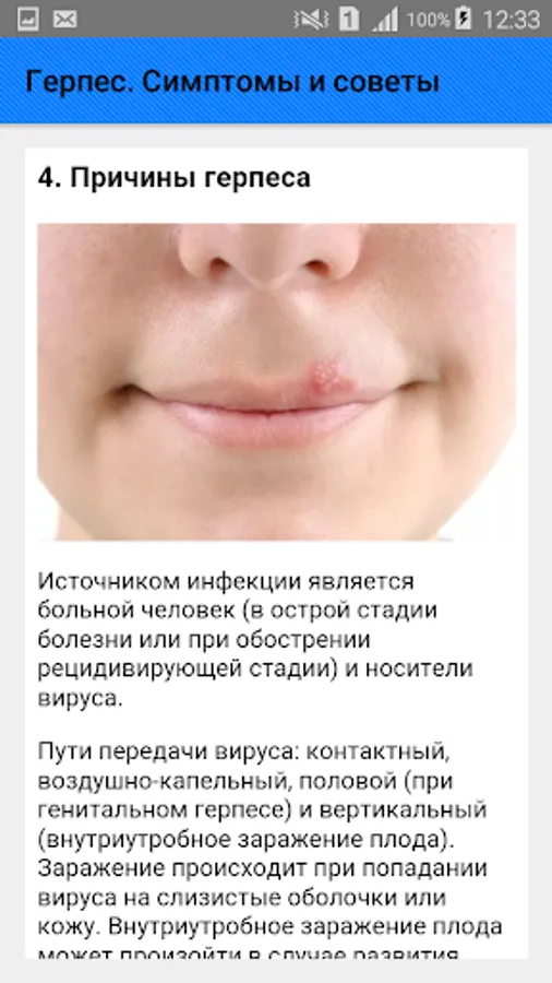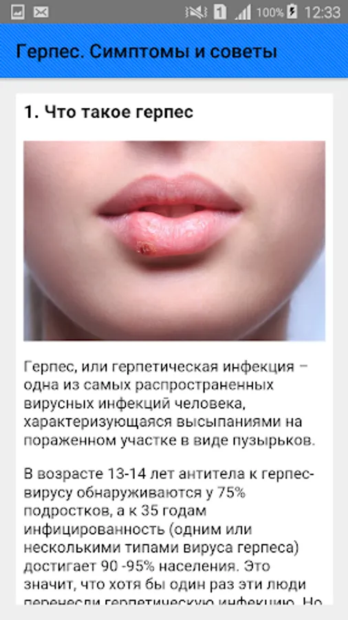 Herpes is a virus that manifests itself in the form of vesicles, which are grouped together and localized on the skin and mucous membranes. The causative agent of the disease is the herpes simplex virus, which affects 90% of the world's population. Of these, only 5% of the population observe clinical symptoms; in the rest, the course of the disease has no pronounced symptoms. An exacerbation of herpes is noted with a pronounced weakening of the immune system. Against the background of marked inhibition of immunity, herpes can turn into a generalized form, affecting the central nervous system with the development of very dangerous conditions.