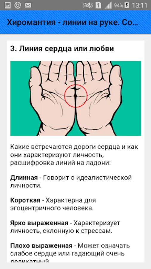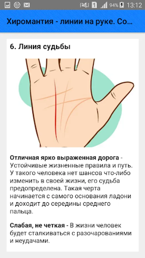 The lines on the hand and their meaning allow you to know your future and past. Palmistry is a complex and complicated science, but having shown patience, you can discover new opportunities for yourself: to independently understand the lines on your hand, and to recognize the meaning of cryptic notation. Detailed decoding of the lines on the hand, palmistry of a fateful feature. The lines on the hand can tell a lot about a person, including his future. You should familiarize yourself with the meaning of these lines in order to find out your fate and avoid troubles.