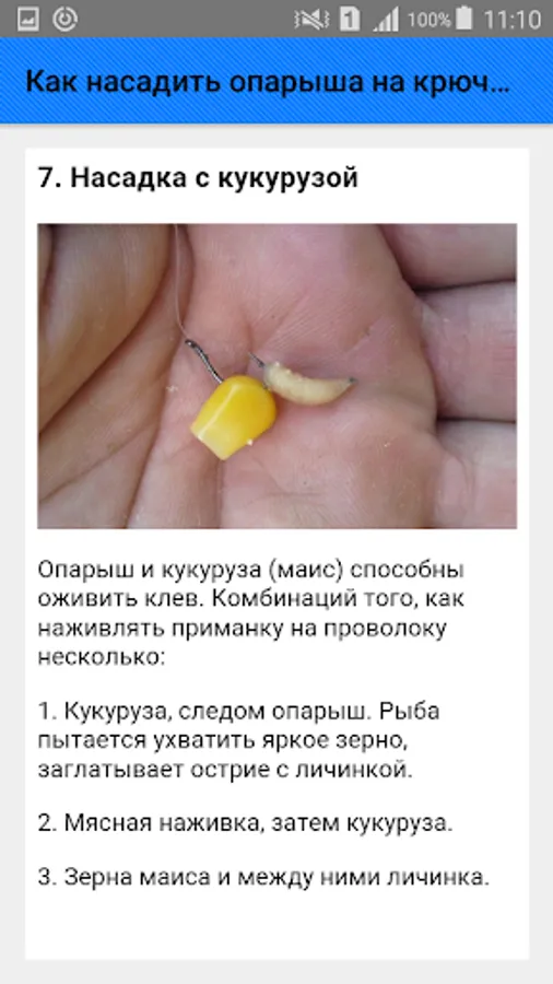 Maggot is a classic bait used for fishing. Almost all types of fish love the meatfly larva, from friendly crucians to predators. In order for the catch to be good, the maggots must be properly hooked. Maggot is one of the most popular baits among fishermen. To make the fishing successful and not take a lot of bait, experienced fishermen have several ways in their arsenal of how to plant maggots on a hook. Maggots can be planted either one at a time or several at once on the hook. The number of larvae depends on the bite and size of the fish. For larger individuals, it is preferable to plant a lot of maggots so that little things can not immediately gobble up the entire nozzle.
