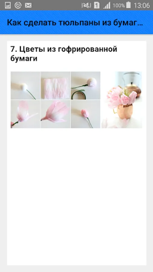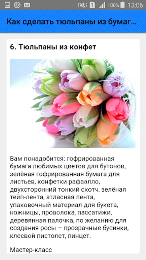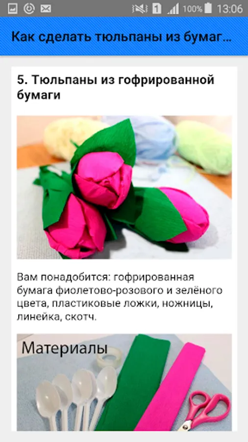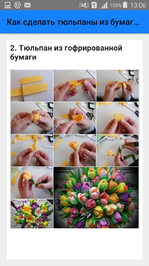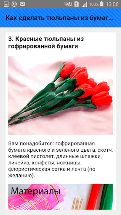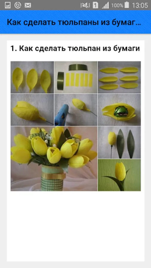 There are many ways to make a tulip out of paper. This application shows how to make flowers from paper, which can be used as a decoration of your own home, or as a gift.