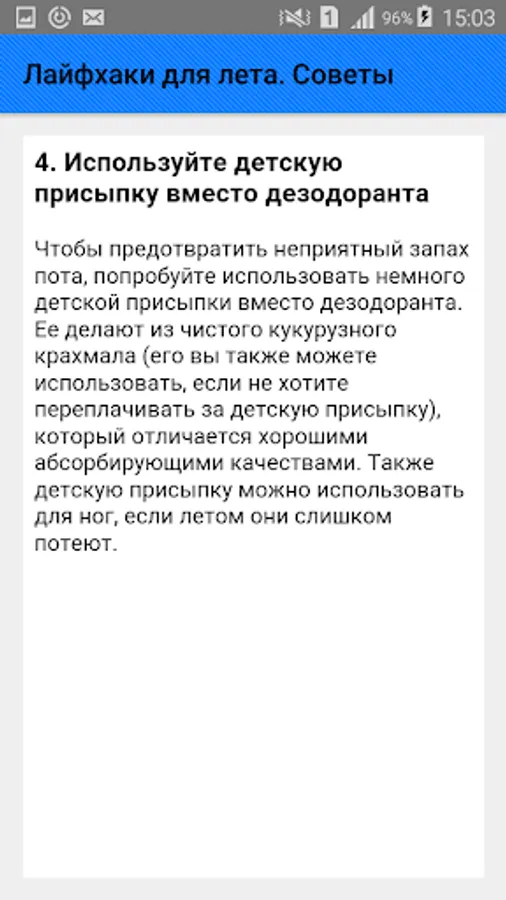 - Use baby powder instead of deodorant