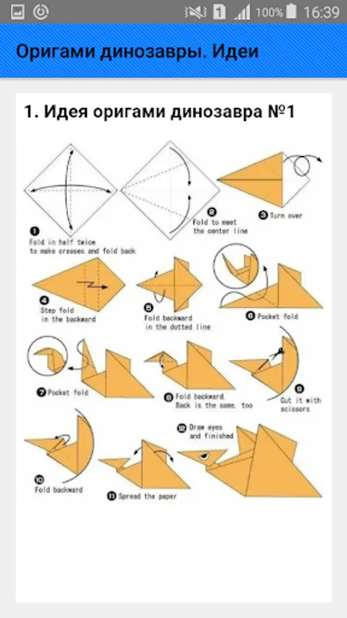 Making an origami dinosaur is not easy, but fun. This is not a task for beginners. But if you managed to make a basic origami bird, then you should be fine. Did you think they became extinct? Well, I do not! They are alive, alive in their incarnations on paper, because today we are going to collect a beautiful origami dinosaur. Origami dinosaurs diagrams are hardly suitable for beginners, since they do not contain any instructions describing the actions, but they are provided with MK diagrams that help to make quite interesting figures with their own hands.