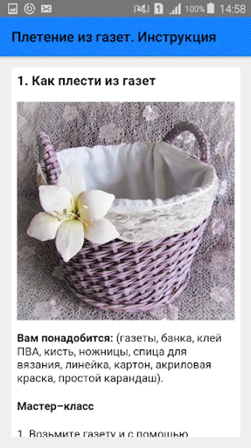 Weaving is one of the first types of manual labor mastered by man. Baskets, mats, items for fishing, cages and much more were made from thin vines. Now getting a vine is not easy, especially for a city dweller. But at hand there is cheap and affordable material - newspapers that can be successfully used to create wicker compositions.