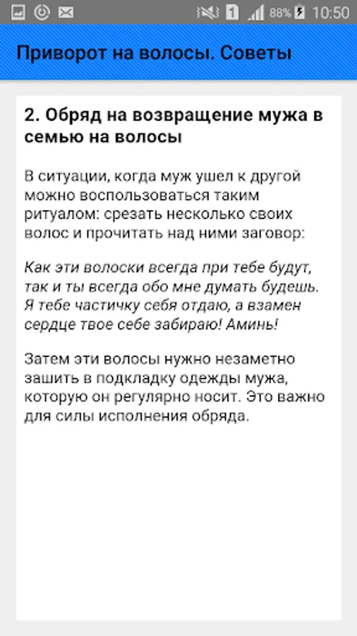 A love spell done on your own at home can firmly bind a loved one to you and give you a chance for family happiness. But at the same time, it is important to follow the rules of the ritual, because, like any powerful tool, a love spell on the hair, if used improperly, can harm him and you. Hair as objects of various rituals have been used for a long time.