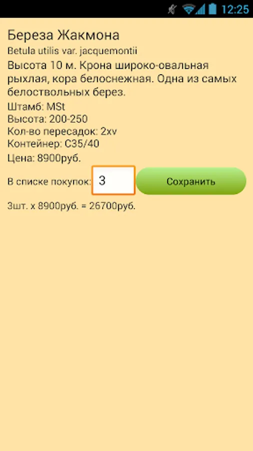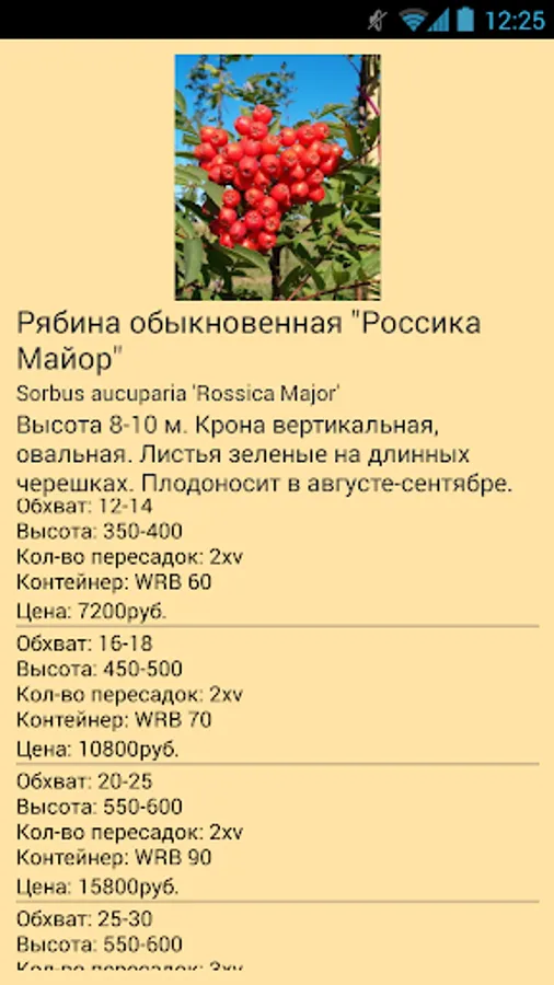 "Kennel Savvateev" represents the catalog of ornamental plants with the function of the price list.