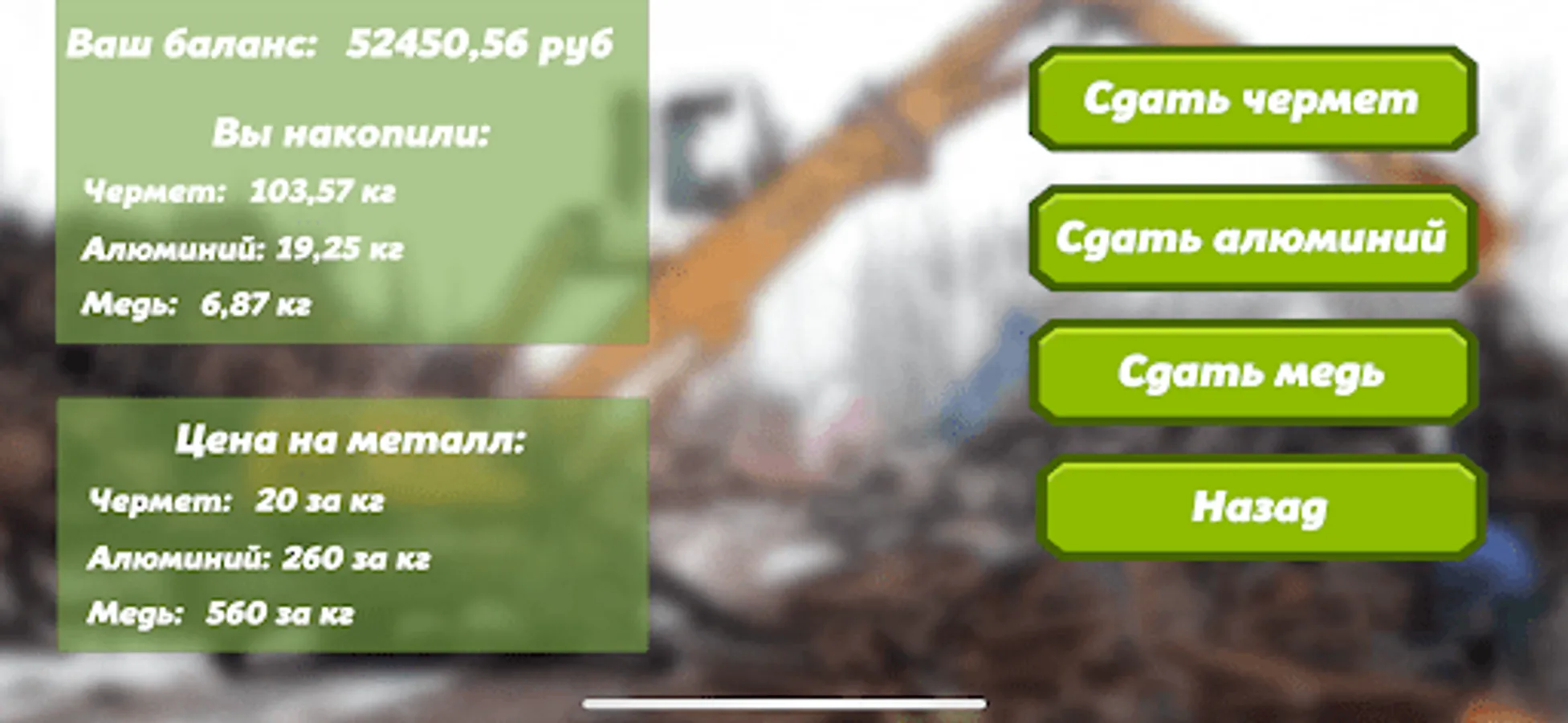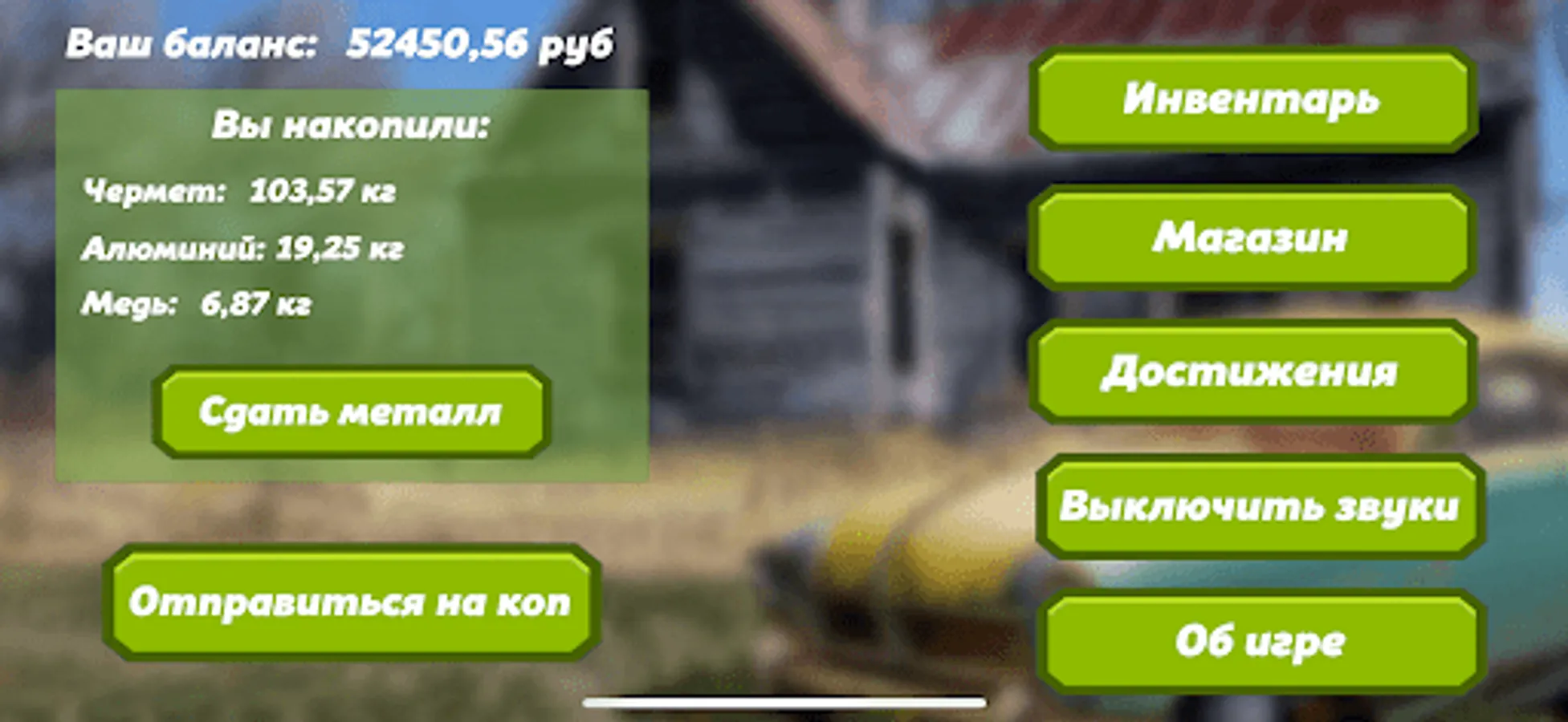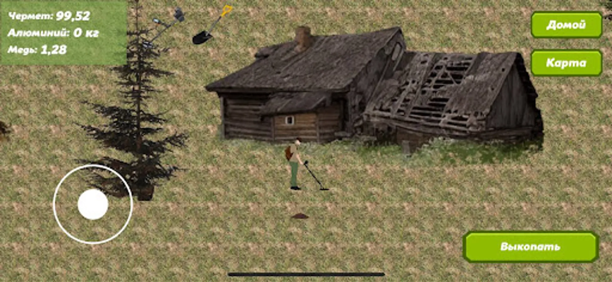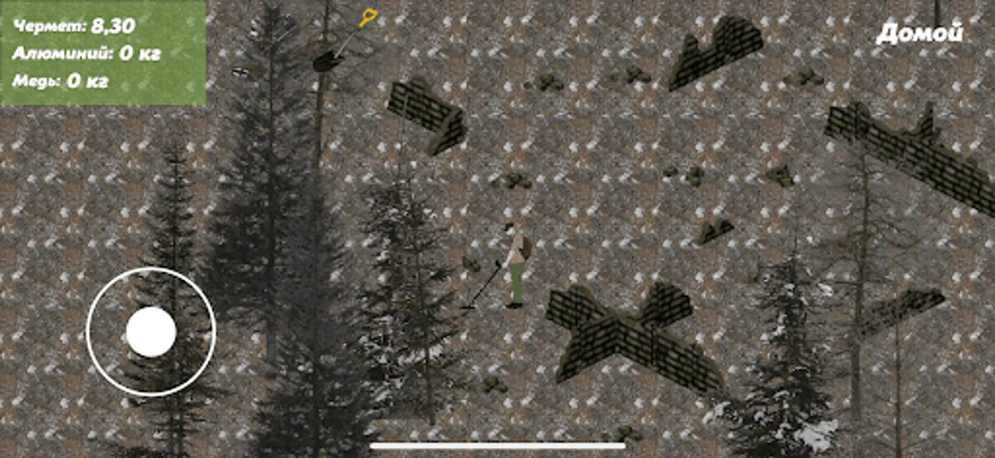 This is a game about instrumental metal detecting and metal detecting. You can look for different types of metals, at the moment there are three of them: ferrous metal, aluminum and copper.