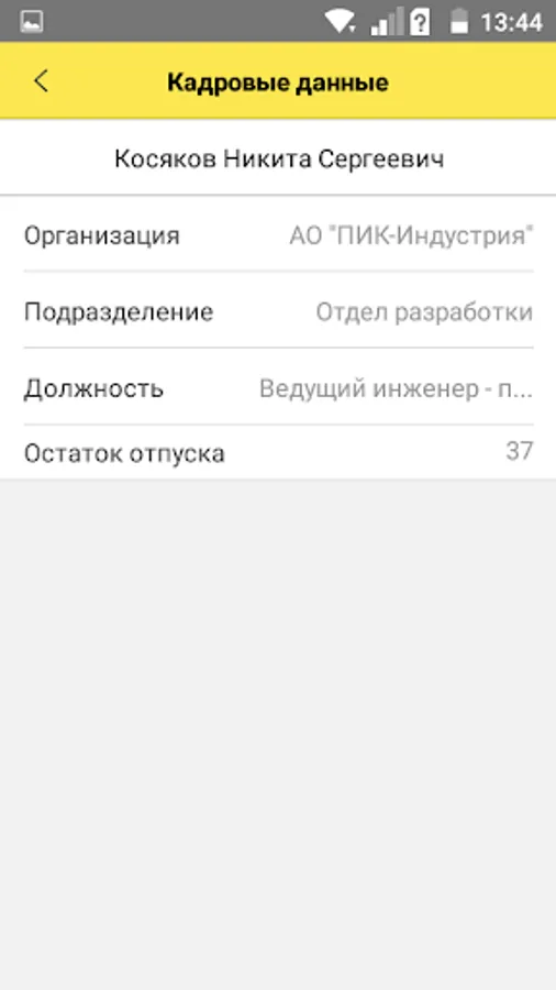 The application is intended for employees of PIK-Industry, to perform work duties and receive personnel information.