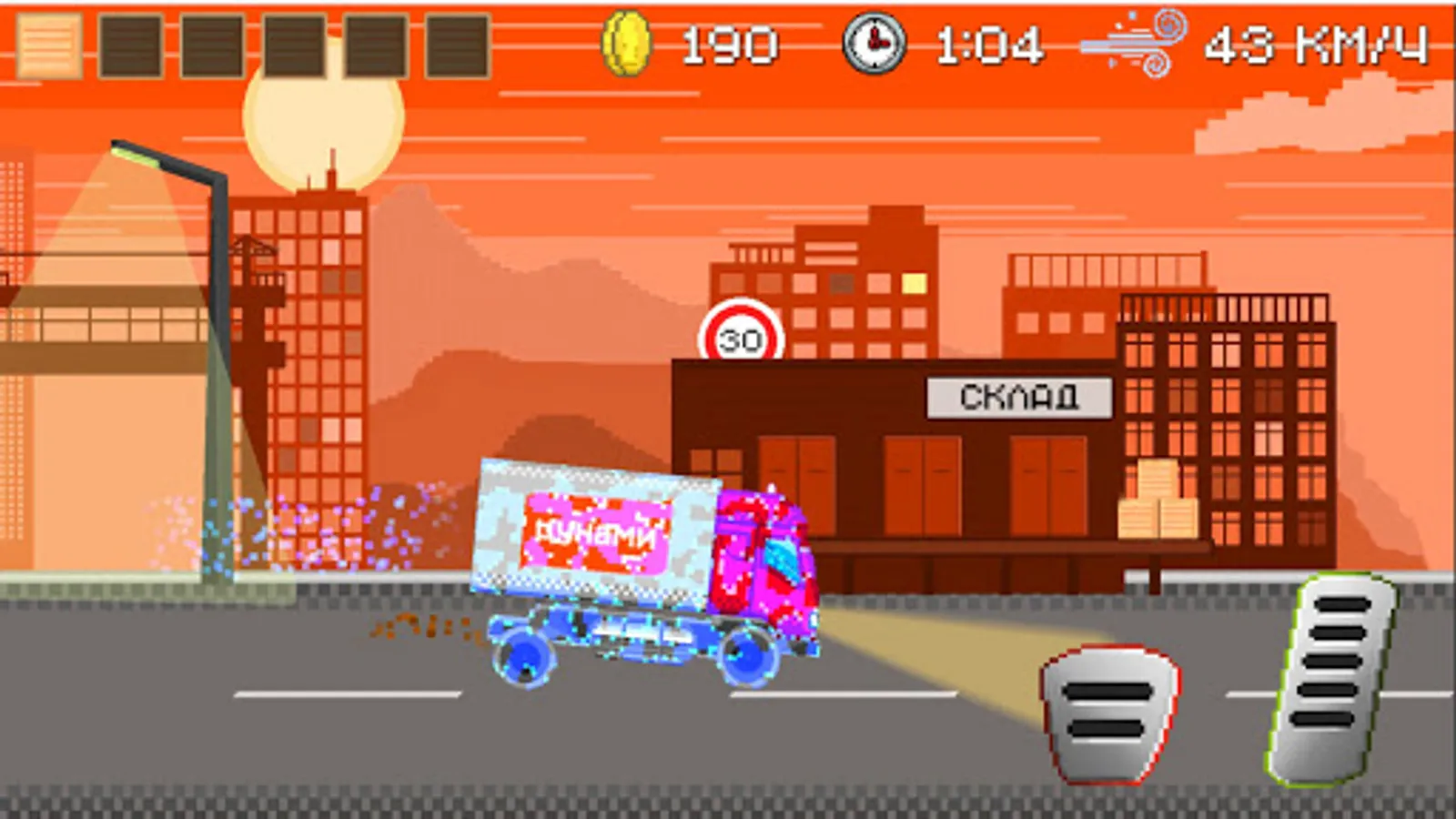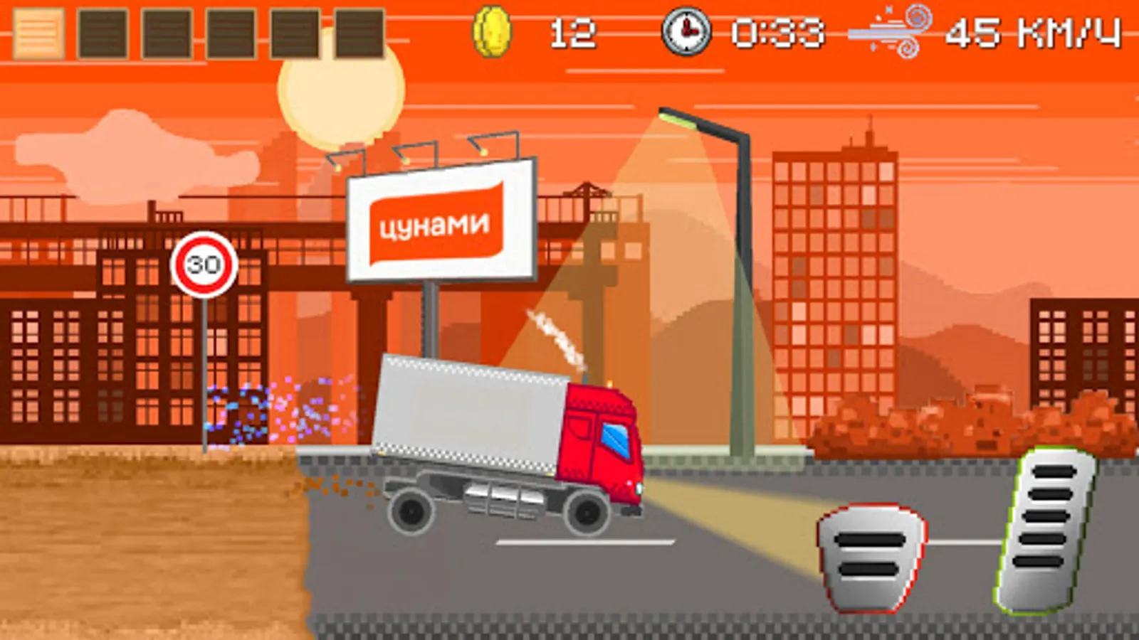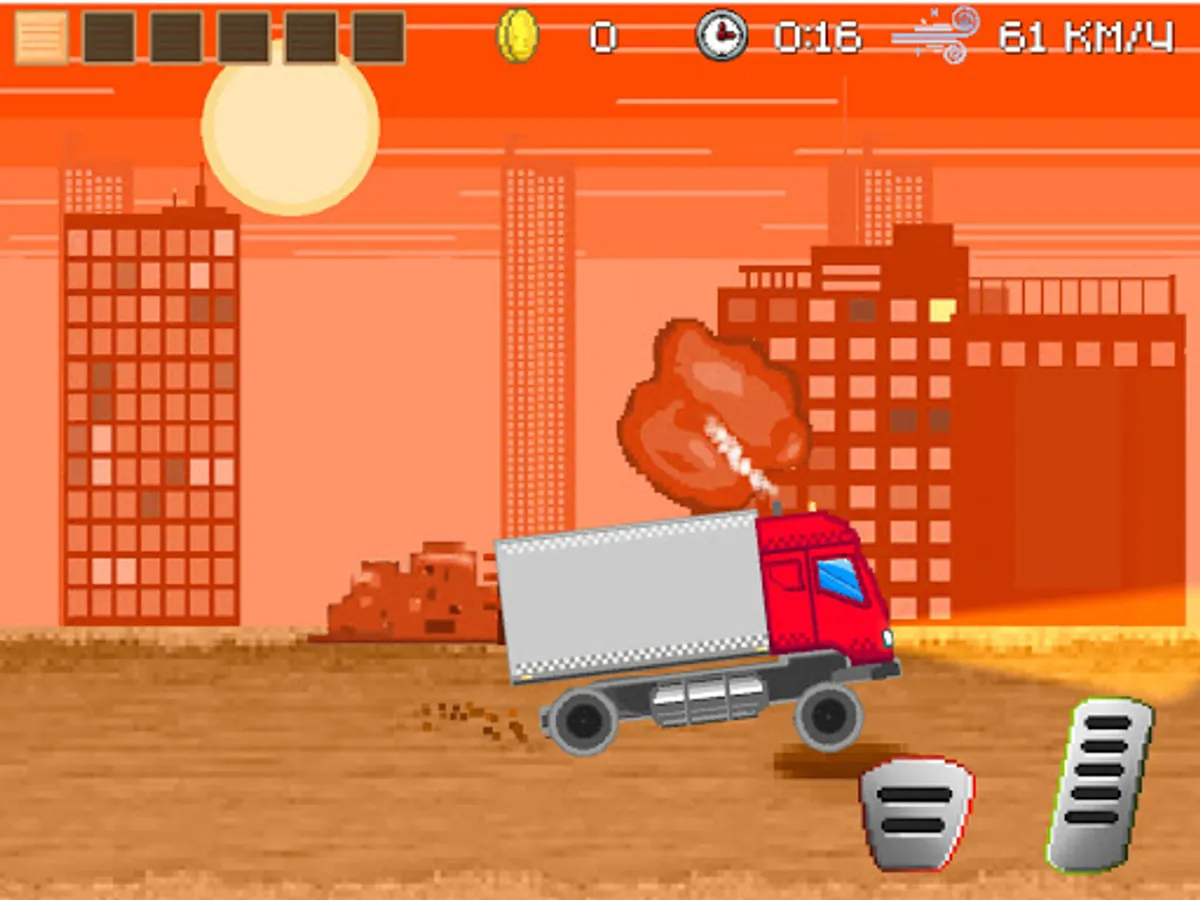 Interactive 2D game. Drive a truck and deliver the cargo in complete integrity with Tsunami technology.
