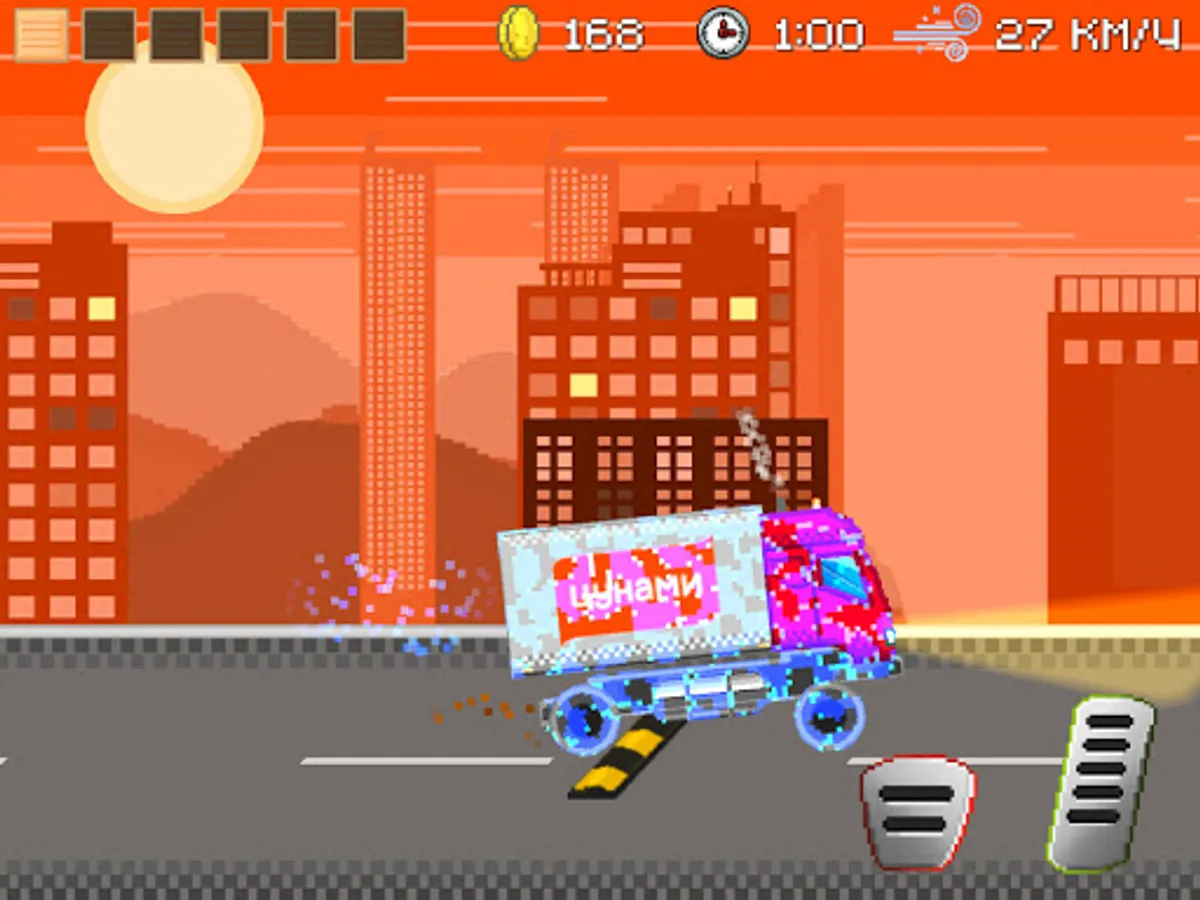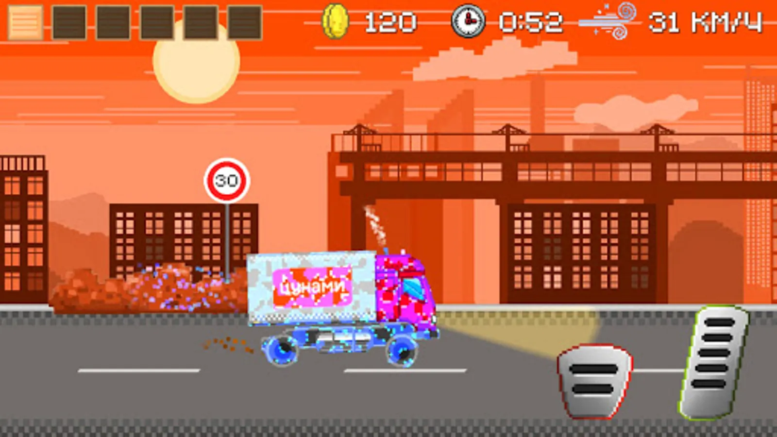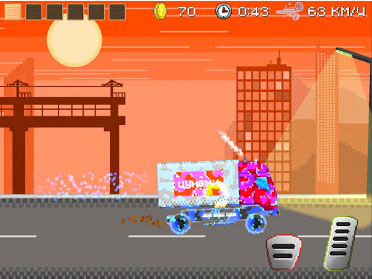 Interactive 2D game. Drive a truck and deliver the cargo in complete integrity with Tsunami technology.