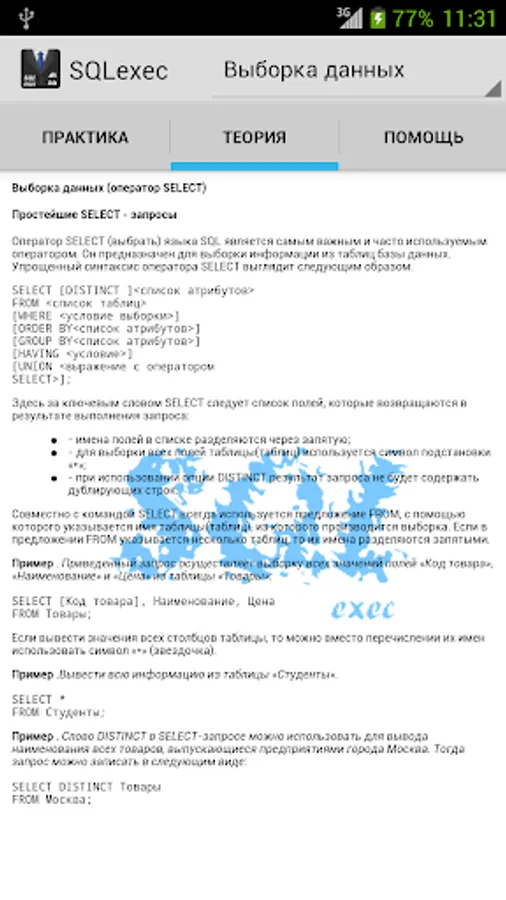 The query results are displayed on the sample table. The success / failure of the request you will be informed of the text and audio message.
