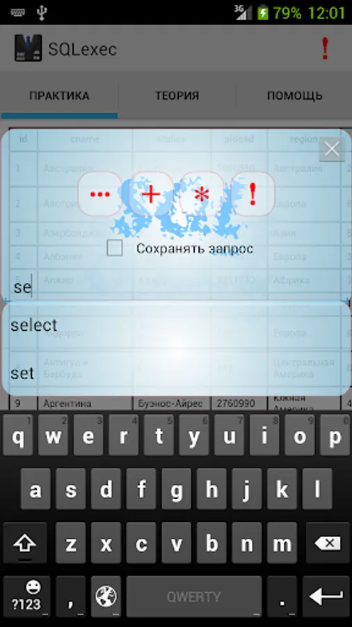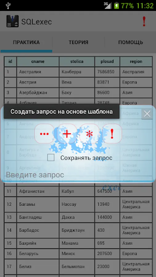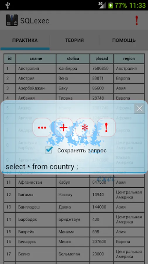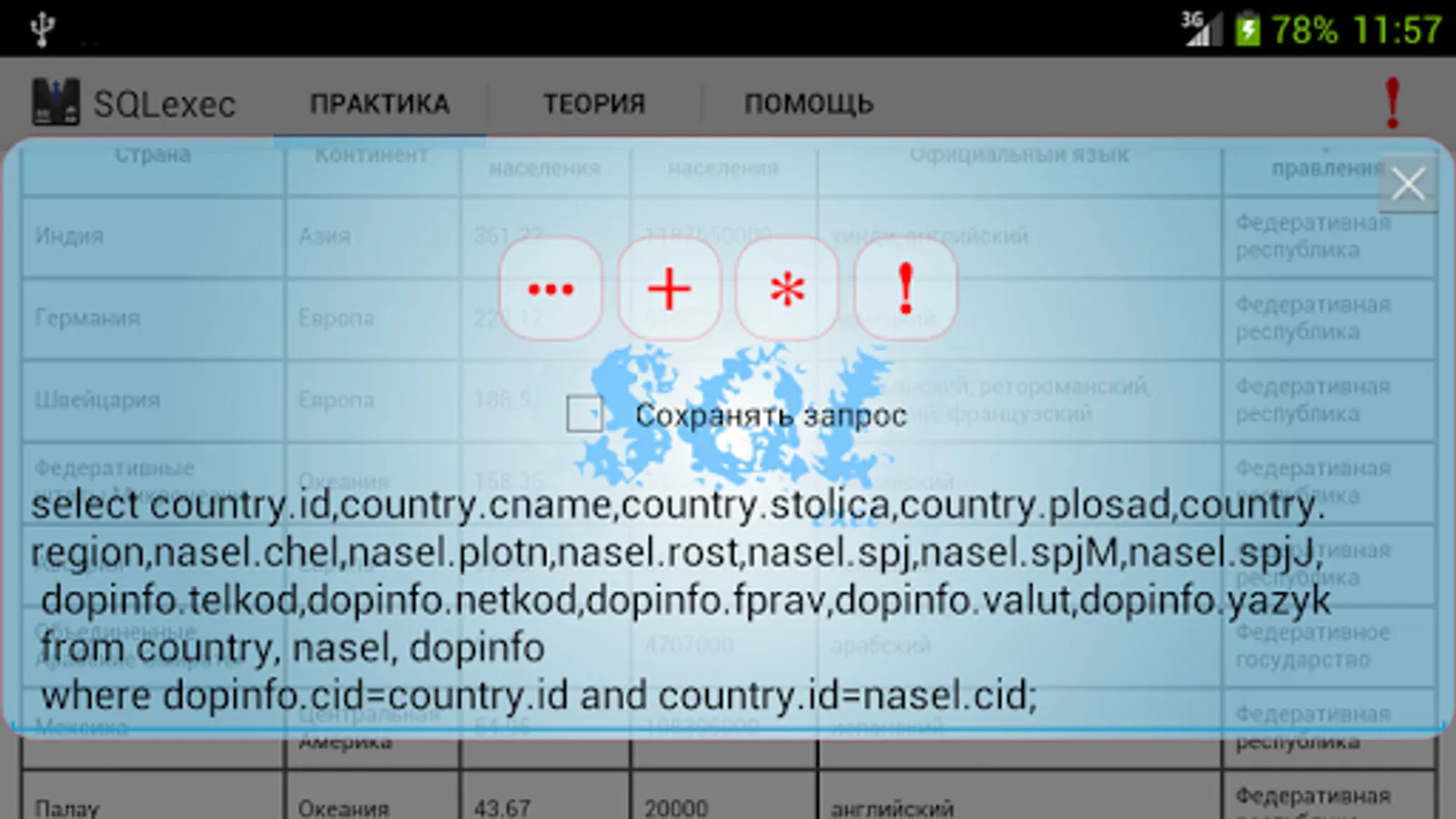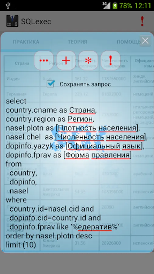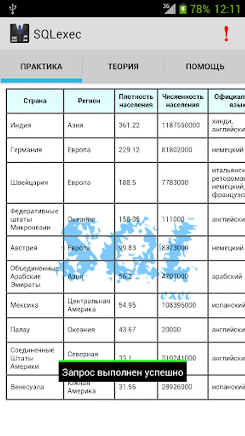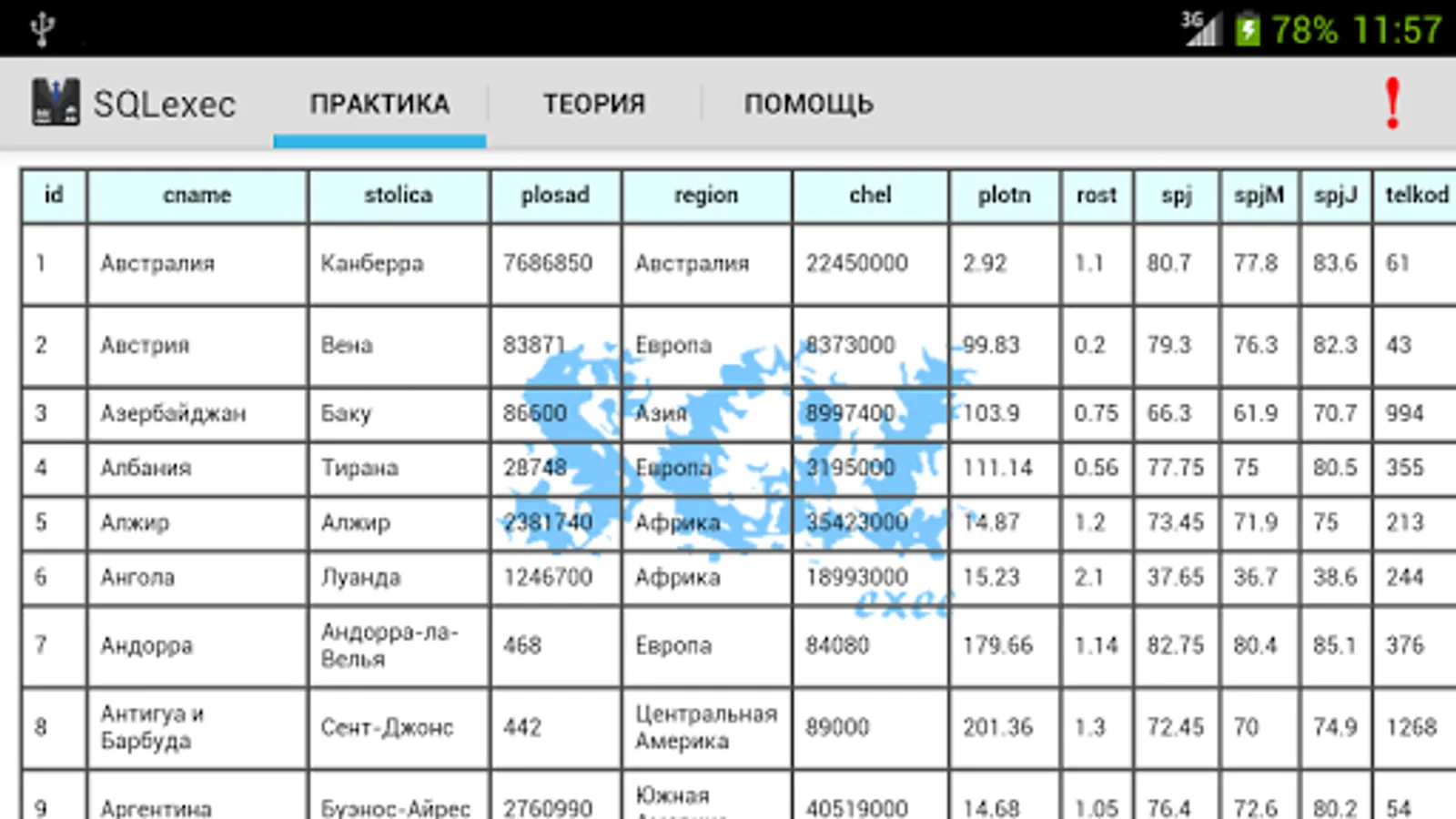 In an application built database - countries of the world, consisting of 3 tables, details - see. "Help" tab.