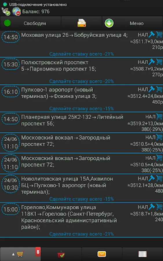 - Auctions will allow you to bargain for the order with other drivers, in this case you solve, whether you want to secure this order or not.