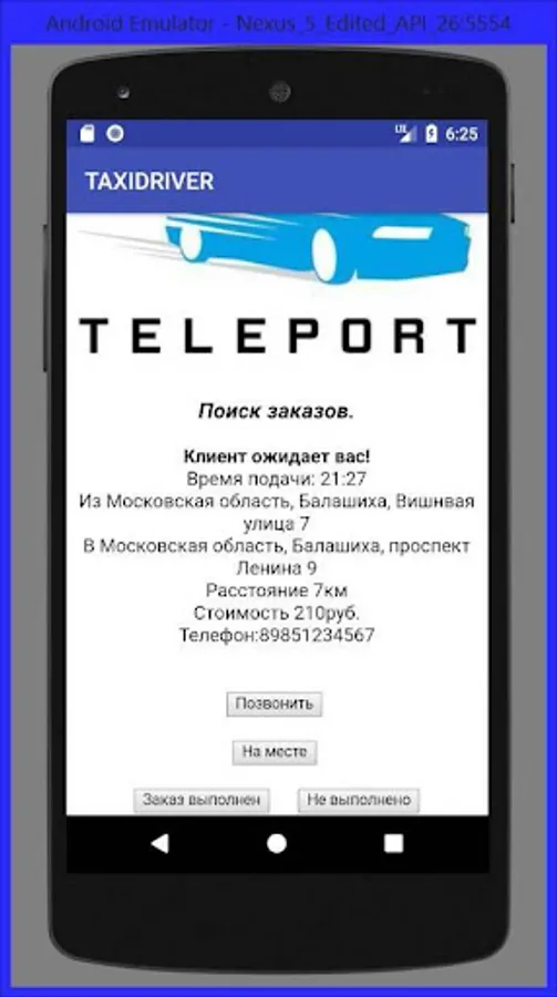 Application for taxi drivers and companies. It works in all Russian cities, with any number of cars and customers. There's an app for monitoring the work of drivers and issuing them orders for dispatching and taxi companies for the taxi drivers to take orders application, the application for the customer to call a taxi. To connect the app please contact us by e-mail.