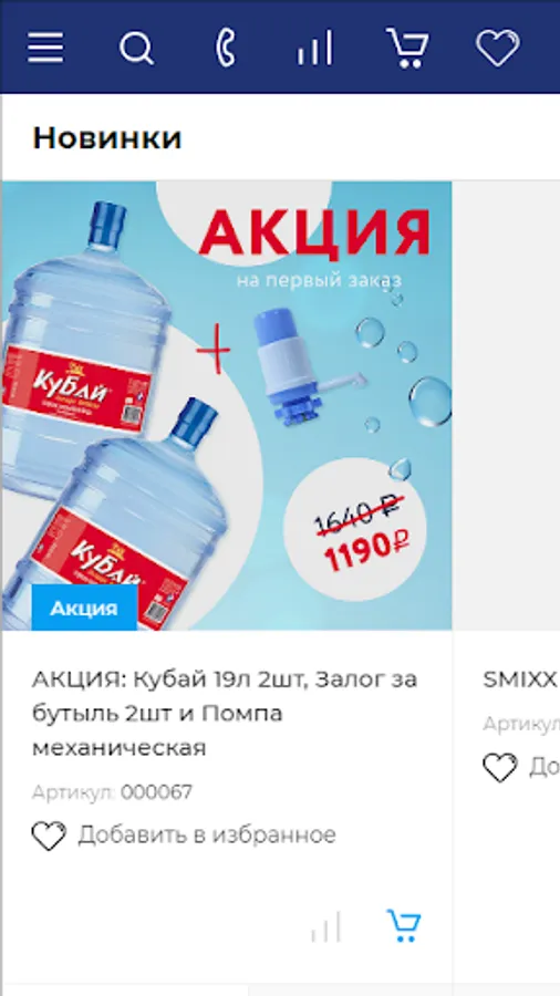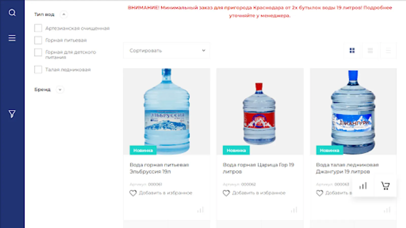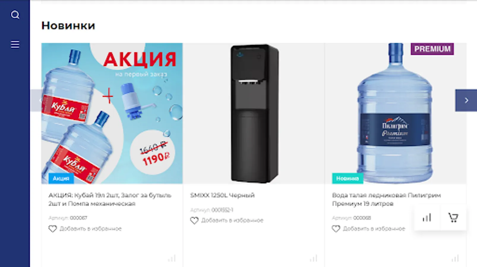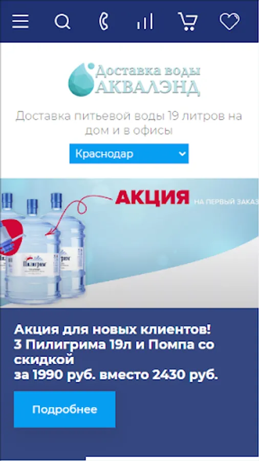 A progressive web application (PWA) for ordering drinking water to your home or office with delivery in Krasnodar, developed on the basis of the site krd.a2h.ru