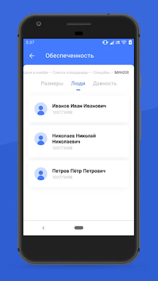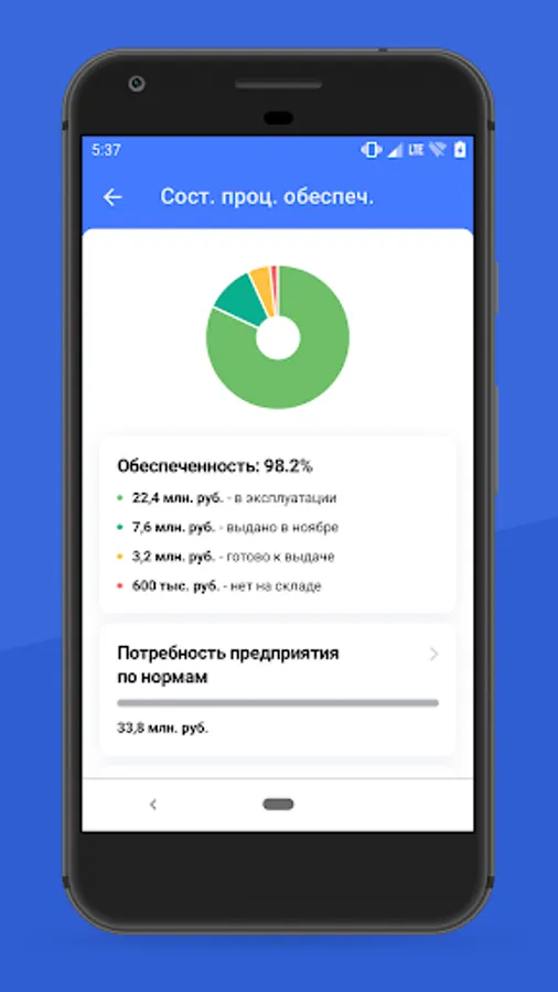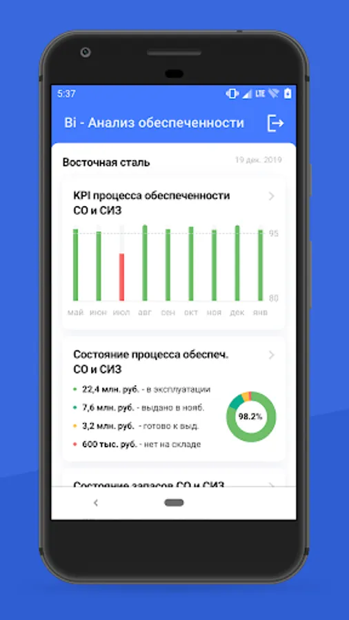 - The mobile application will tell you who, what and for what amount, is currently receiving workwear in real time, for the past hour, for a day, for a month for a year.