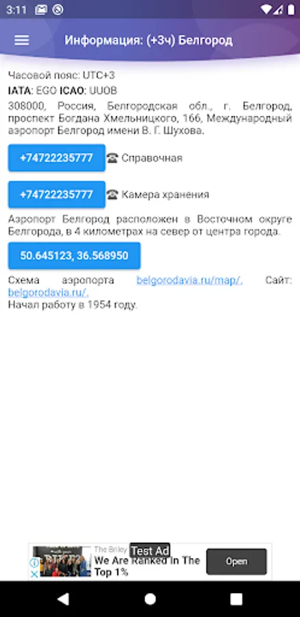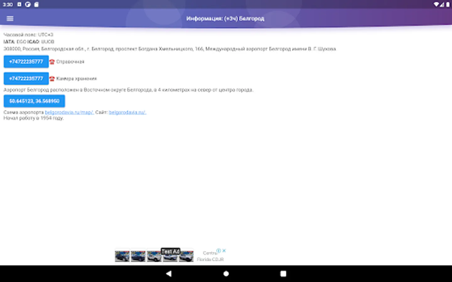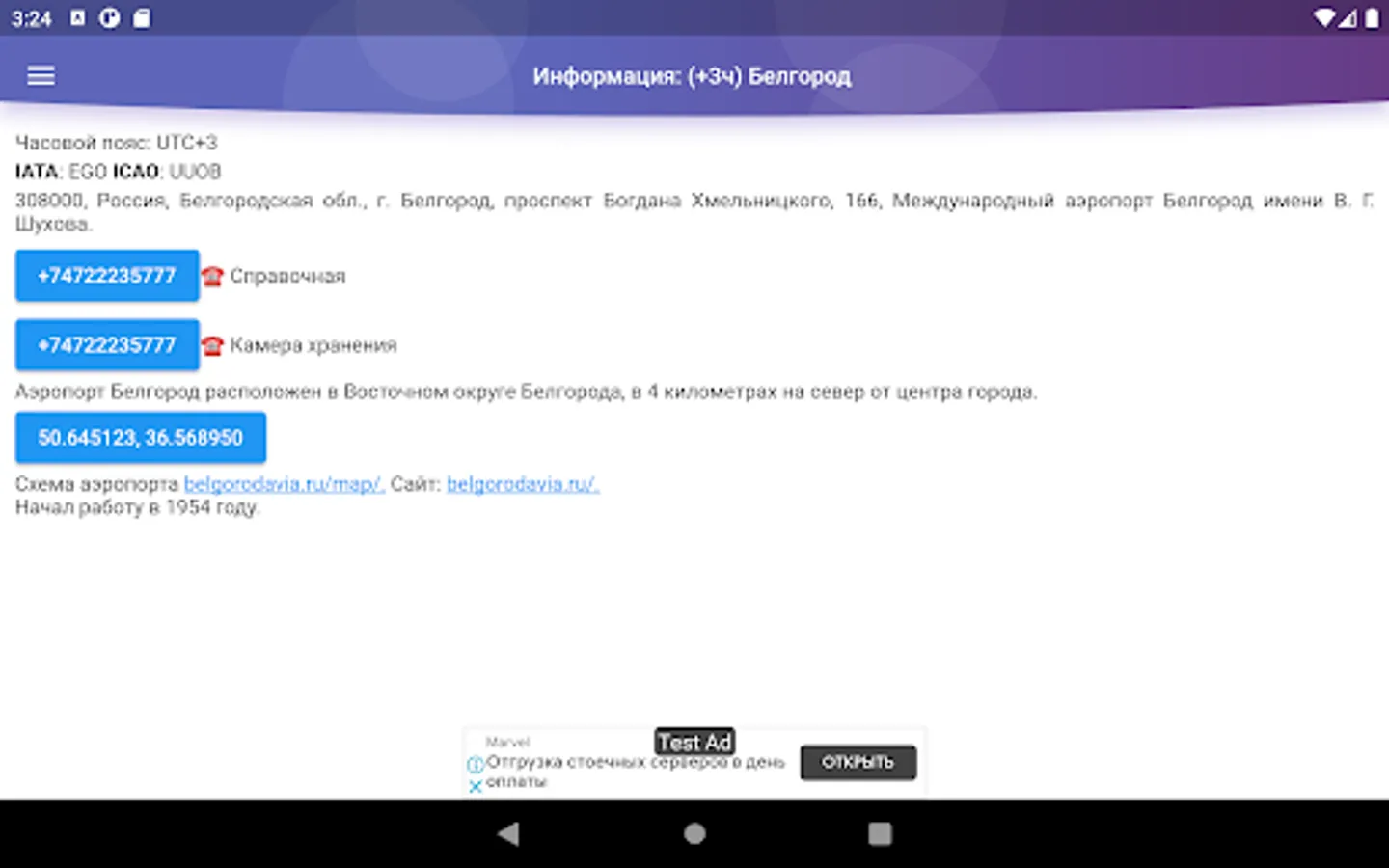 Unofficial application with a board of arrivals and departures at the airport of Belgorod. Additionally, the flight schedule and other useful information.