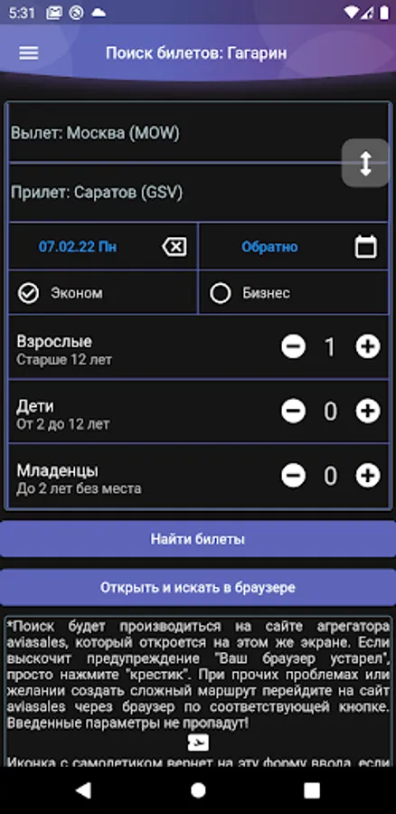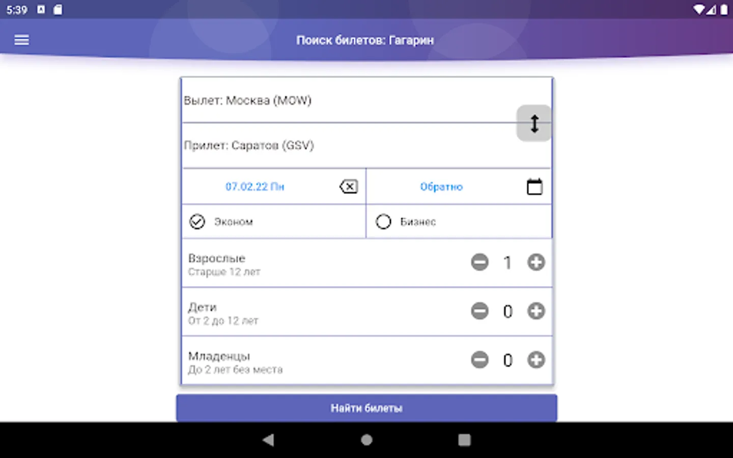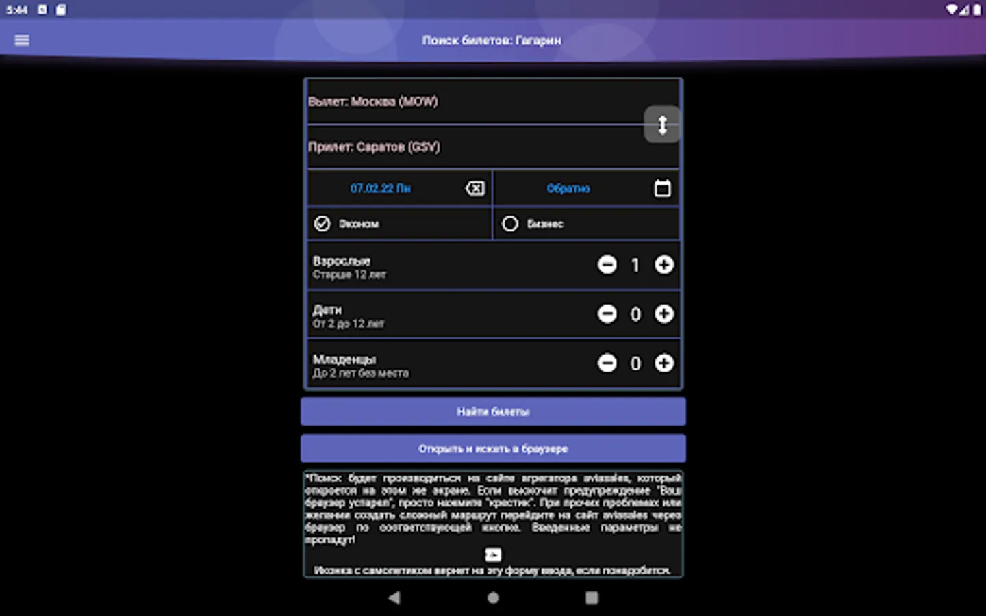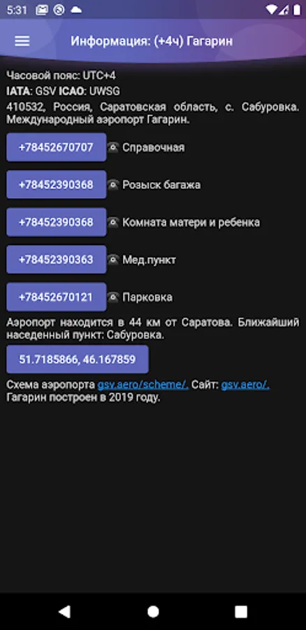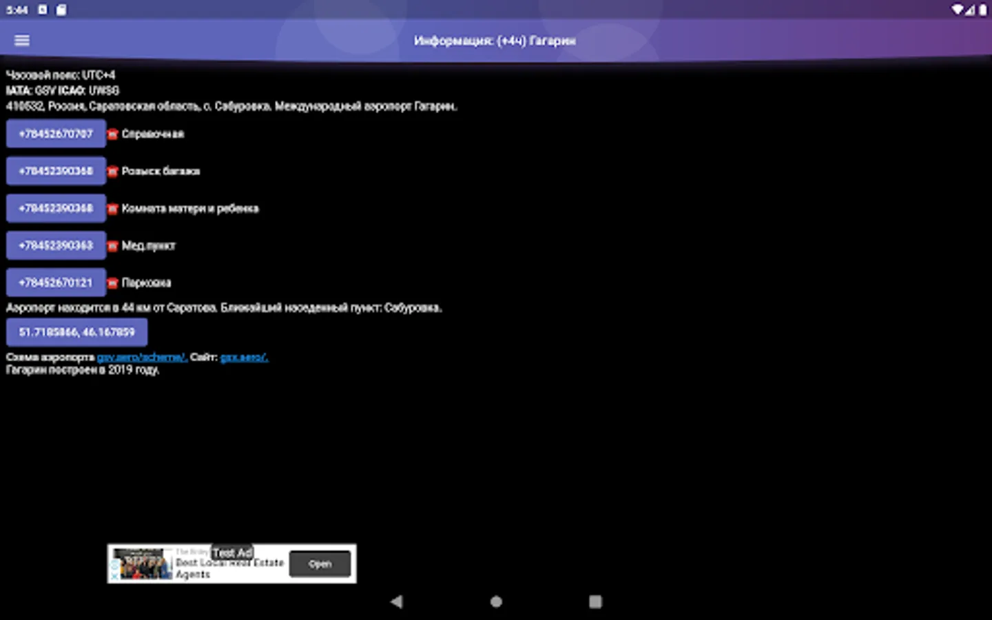 An unofficial application of Gagarin Airport, providing information on the status of departures and arrivals of aircraft. More flight schedules and other useful information. It is possible to expand the scoreboard line into an extended information screen.