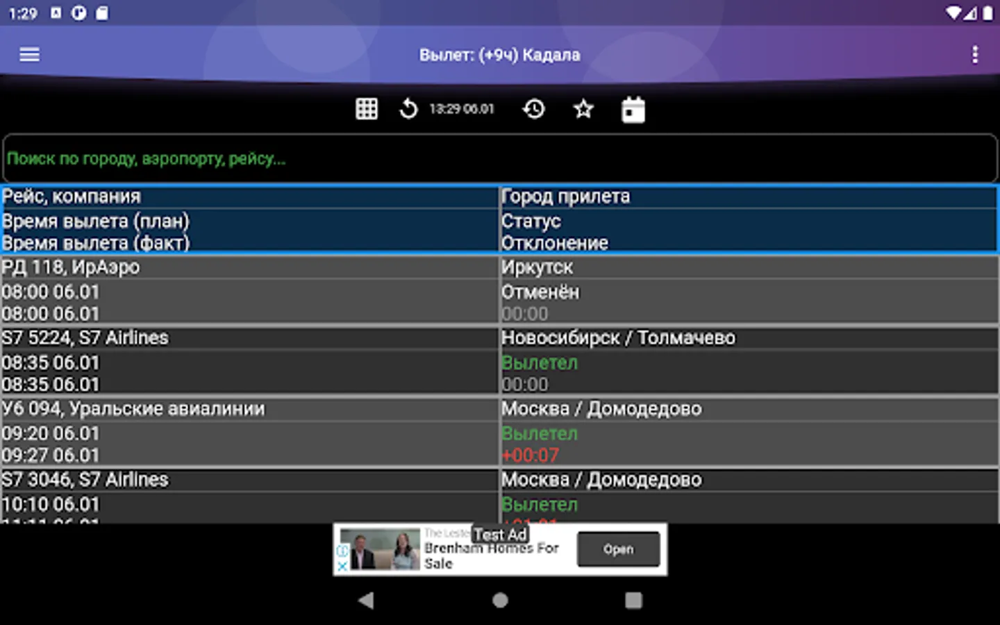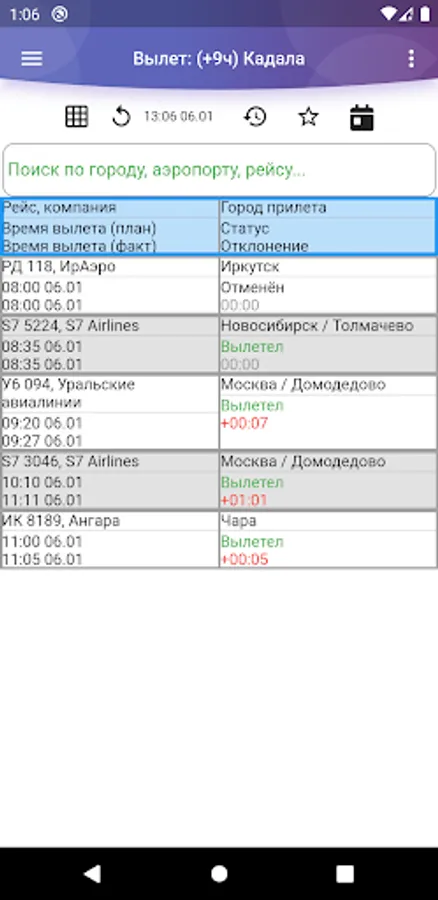 An unofficial application with information on the statuses of departures and arrivals at the airport in Chita. Additionally, the flight schedule and other useful information.