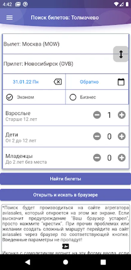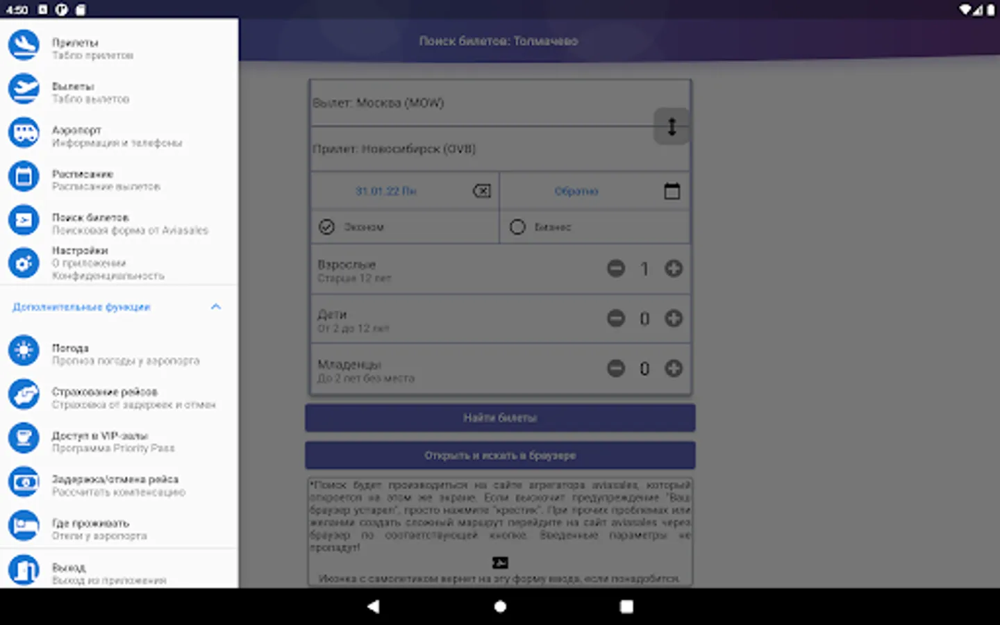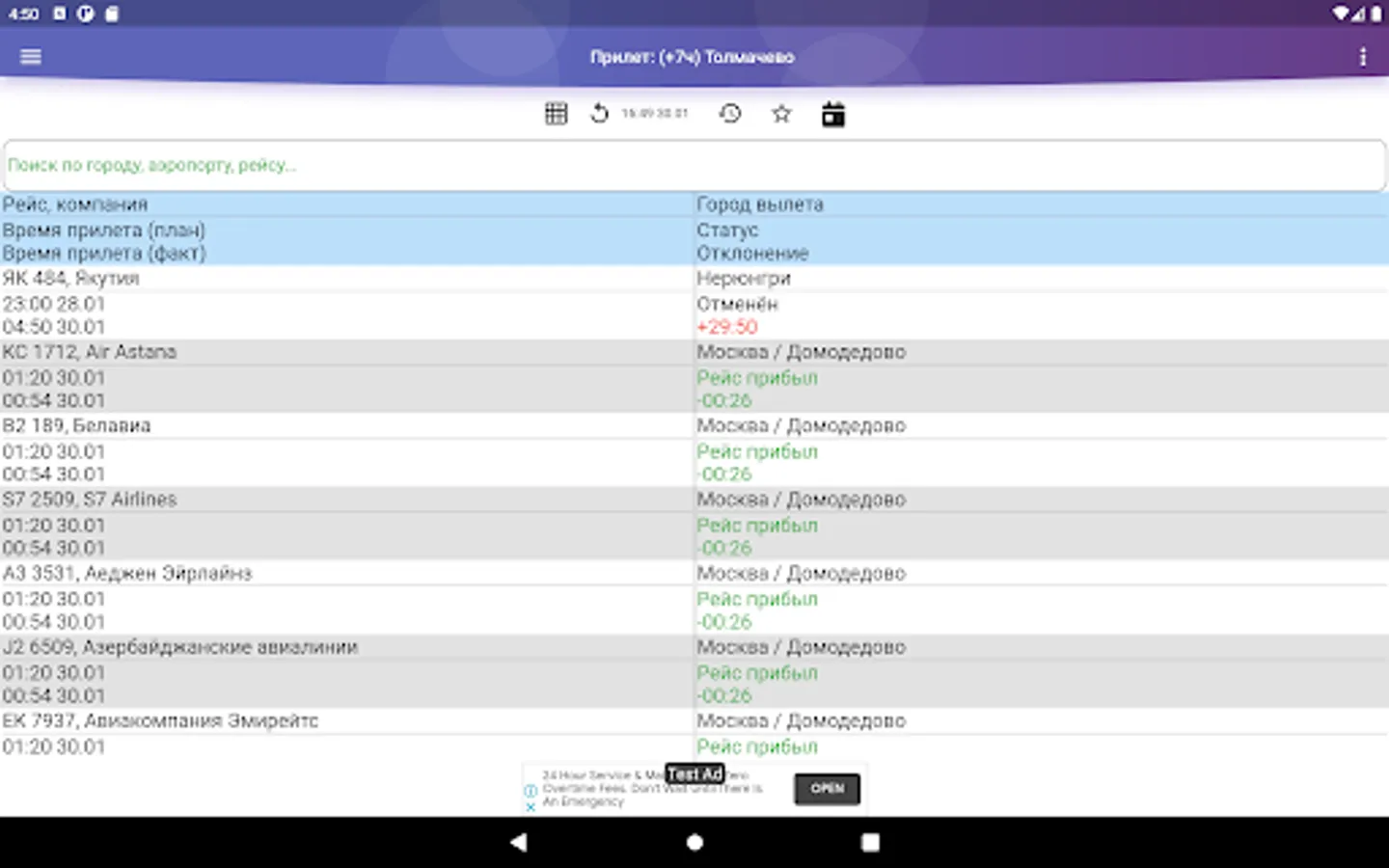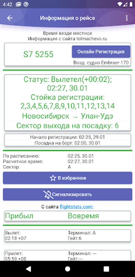 ◊ DATA from the site https://tolmachevo.ru/: flight status, etc.