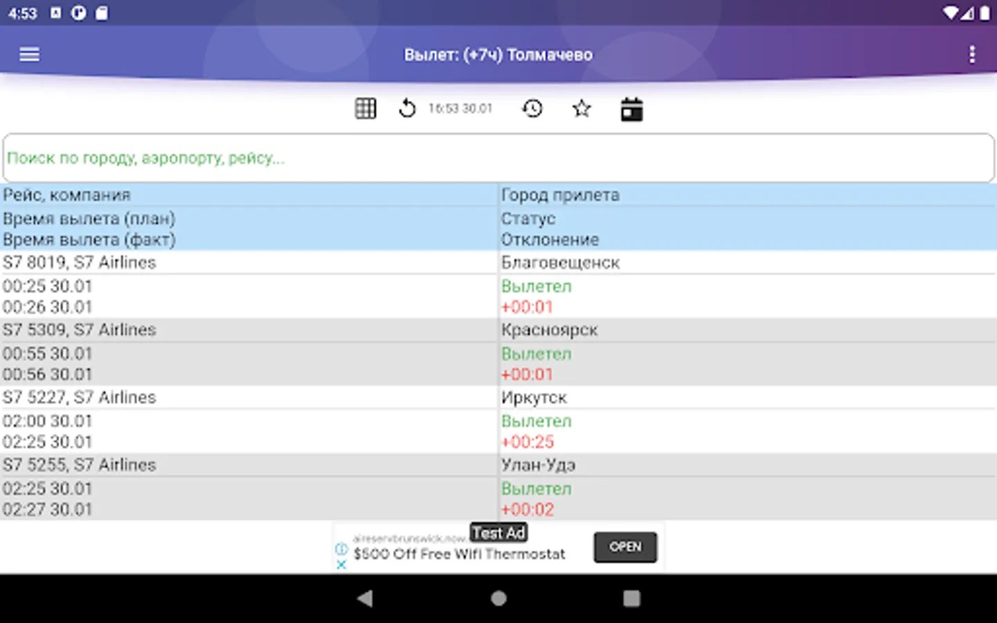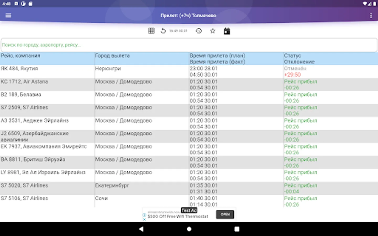 Unofficial scoreboard from Novosibirsk airport (Tolmachevo)
