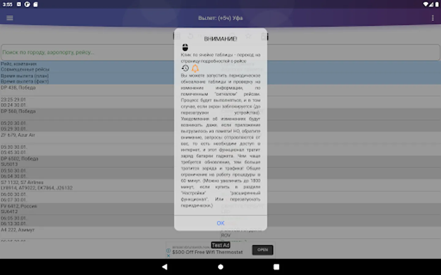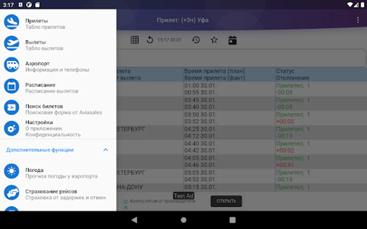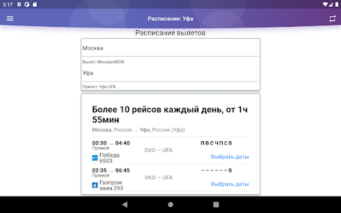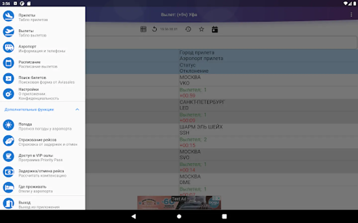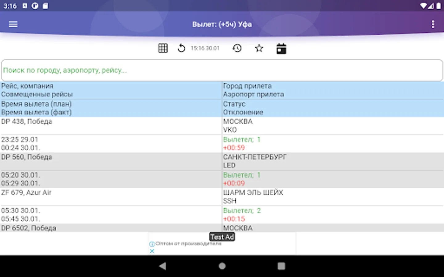 √ INFORMATION from the website airportufa.ru/: flight status, time of actual departure or arrival, exit numbers