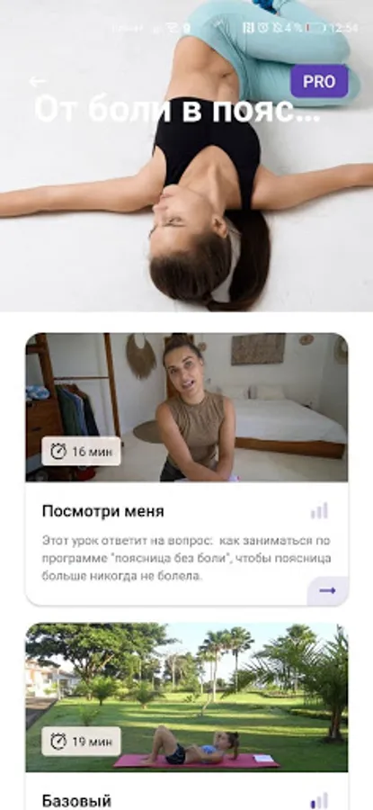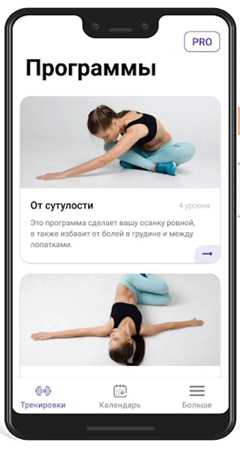 The training programs in the application work out the muscles of the back, improve the flexibility of the spine, relieve back pain and even out posture.